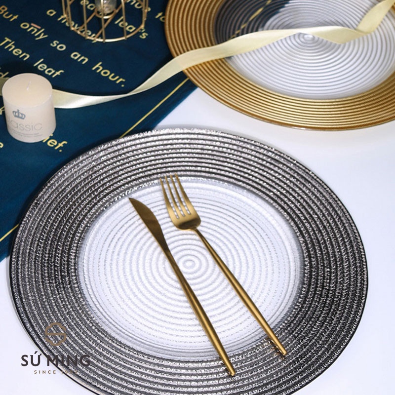 Đĩa Thuỷ Tinh Rơm Vàng [CHÂU ÂU], phong cách sang trọng độc đáo, chịu lực, vàng 18k, giao hàng nhanh chóng.