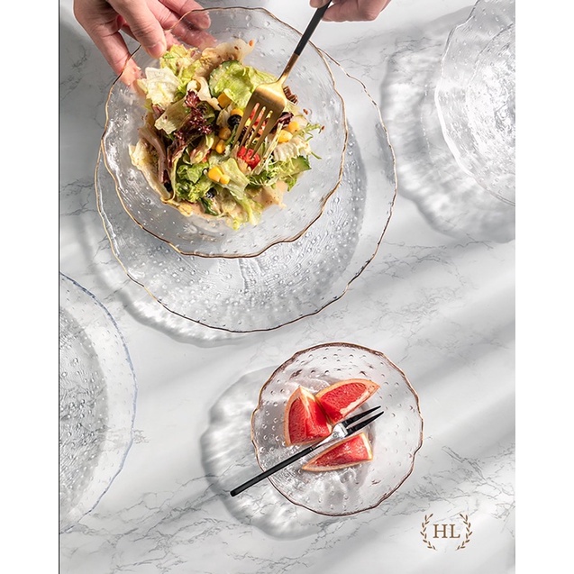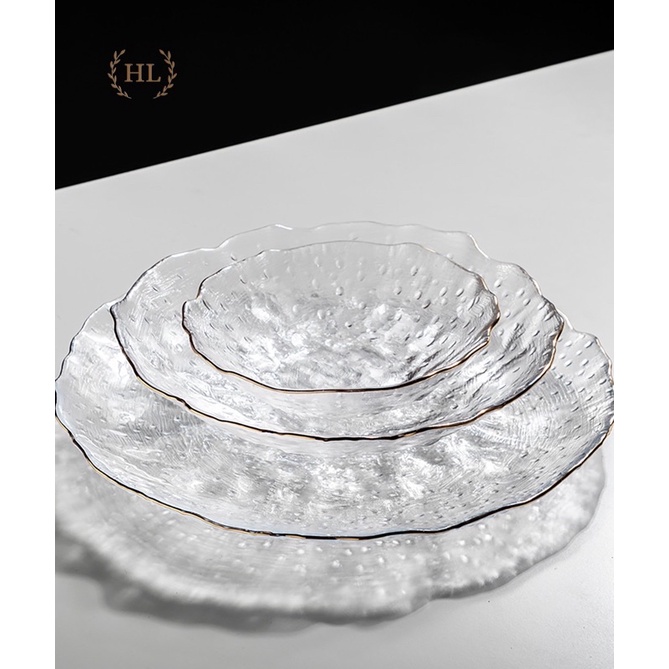 ĐĨA THỦY TINH SẦN VIỀN VÀNG | ĐĨA SẦN SÂU KẺ VÀNG KIM HOME LUXURY DECOR | BỘ ĐĨA