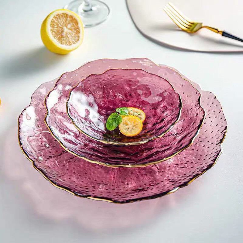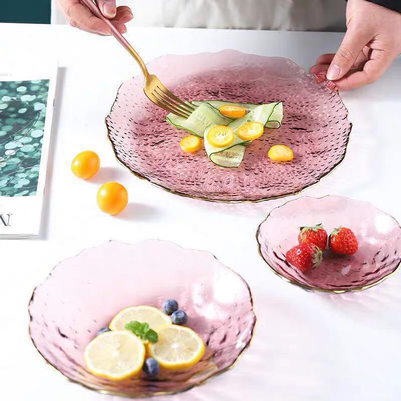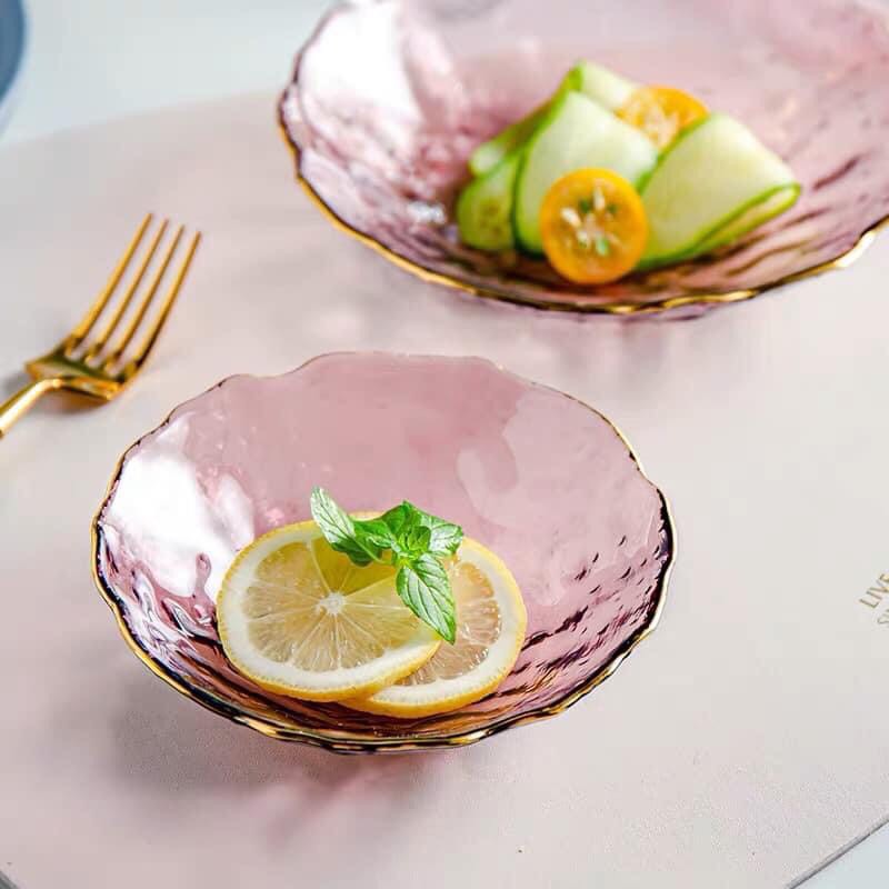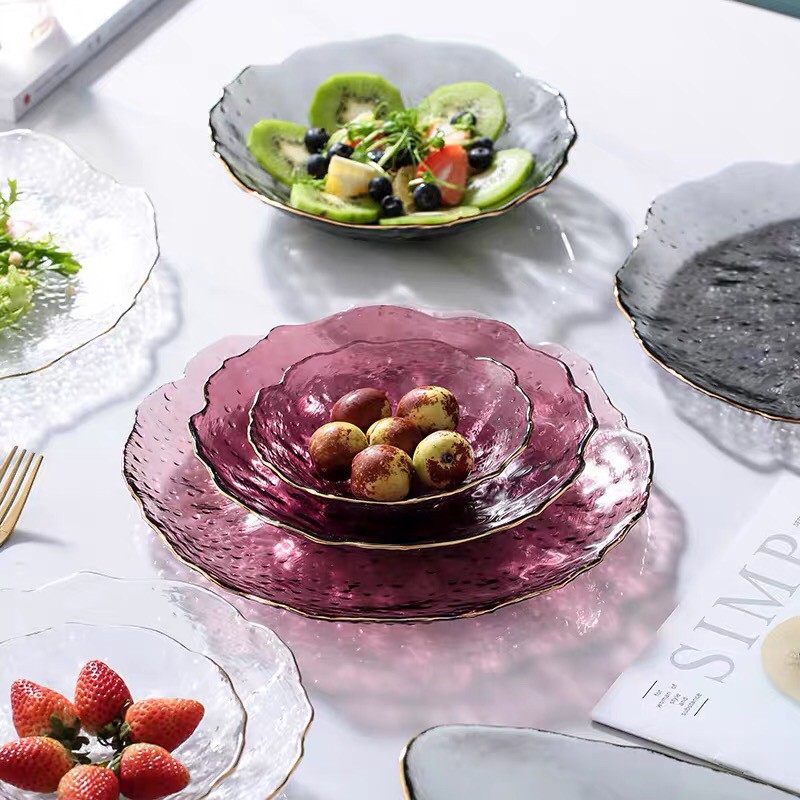 Nhà cửa & Đời sống > Bộ đồ bàn ăn > Dĩa || đĩa thủy tinh tím viền vàng,bày hoa quả, salad,để bánh kẹo cao cấpCòn hàng
