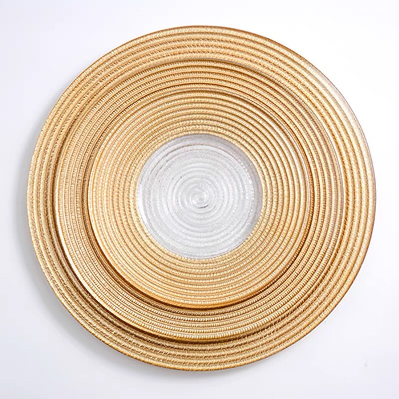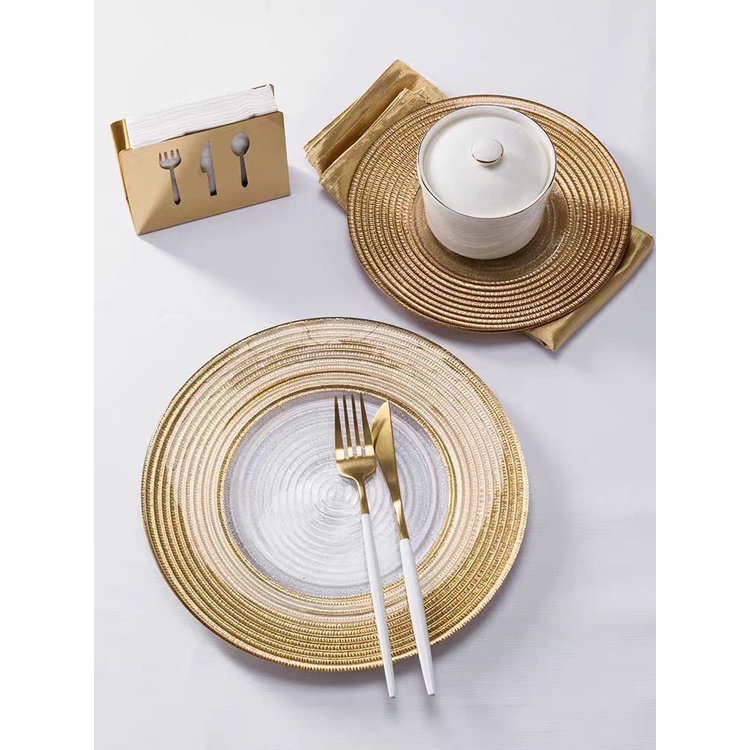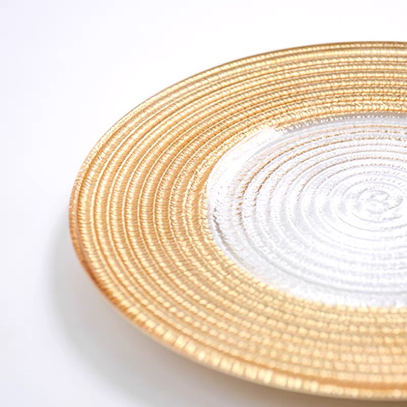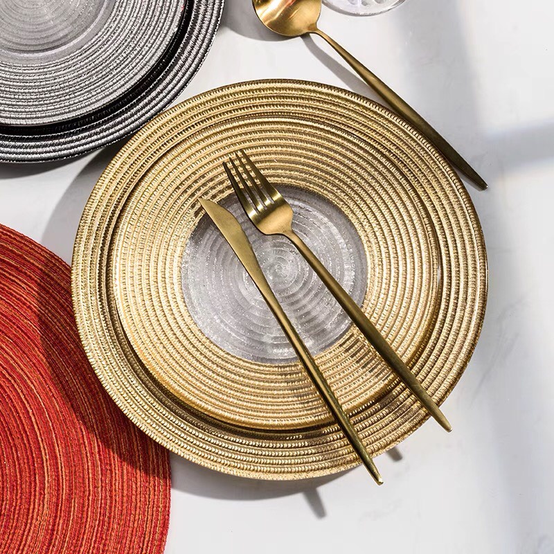 Nhà cửa & Đời sống > Bộ đồ bàn ăn > Dĩa || Đĩa thủy tinh vành vàng Châu Âu, phong cách sang trọng độc đáo, chịu lựcCòn hàng