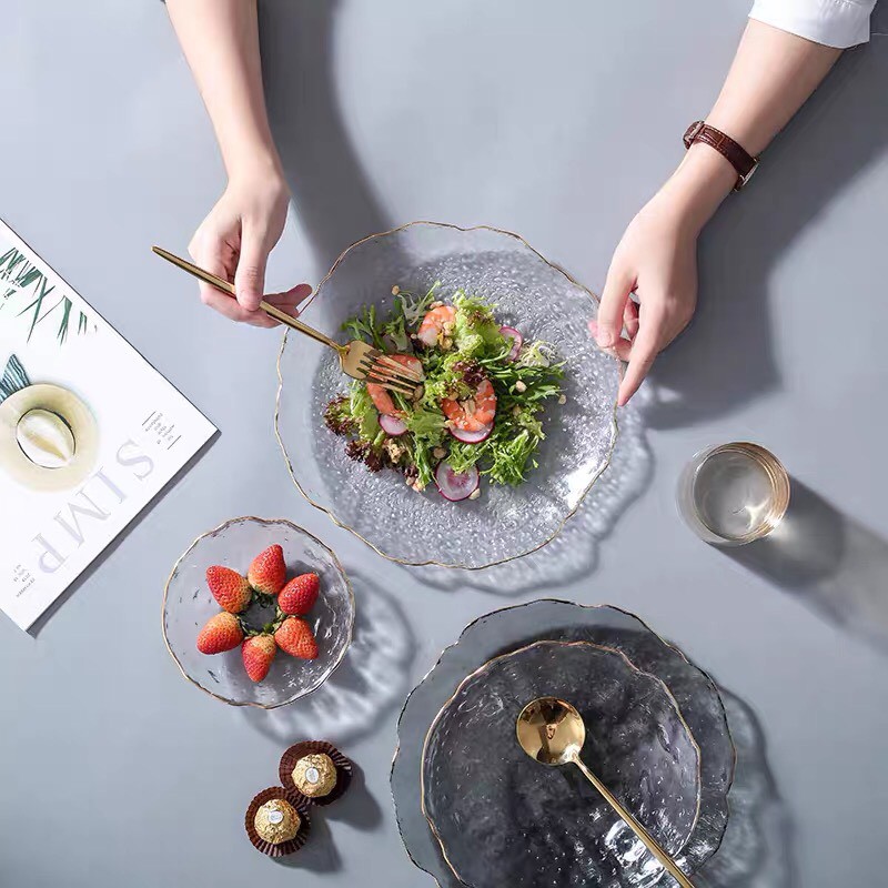 Nhà cửa & Đời sống > Bộ đồ bàn ăn > Dĩa || đĩa thủy trắng viền vàng, để bánh kẹo, hoa quả, salad cao cấpCòn hàng