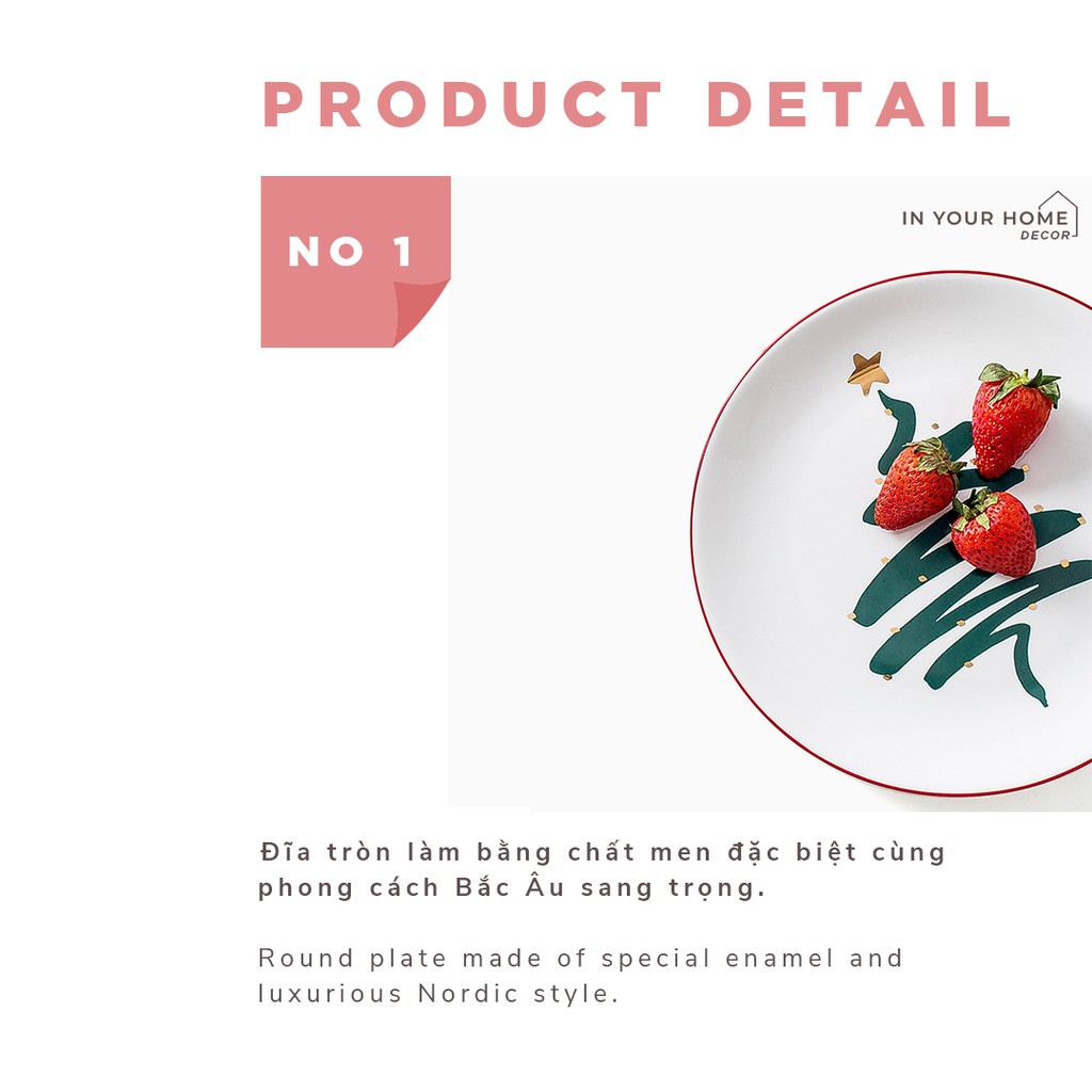 -Đĩa tròn được làm bằng chất men rất đặc biệt. Được thiết kế theo phong cách Bắc Âu rất sang trụt sang.
