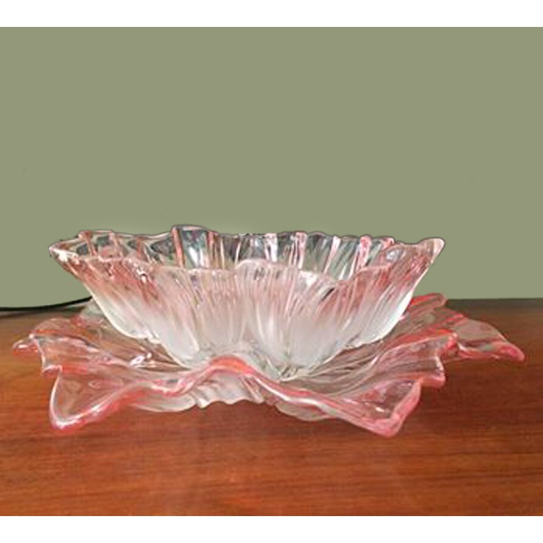 Đĩa/ Tô thủy tinh pha lê hoa Tulips/ Hoa Sen màu hồng