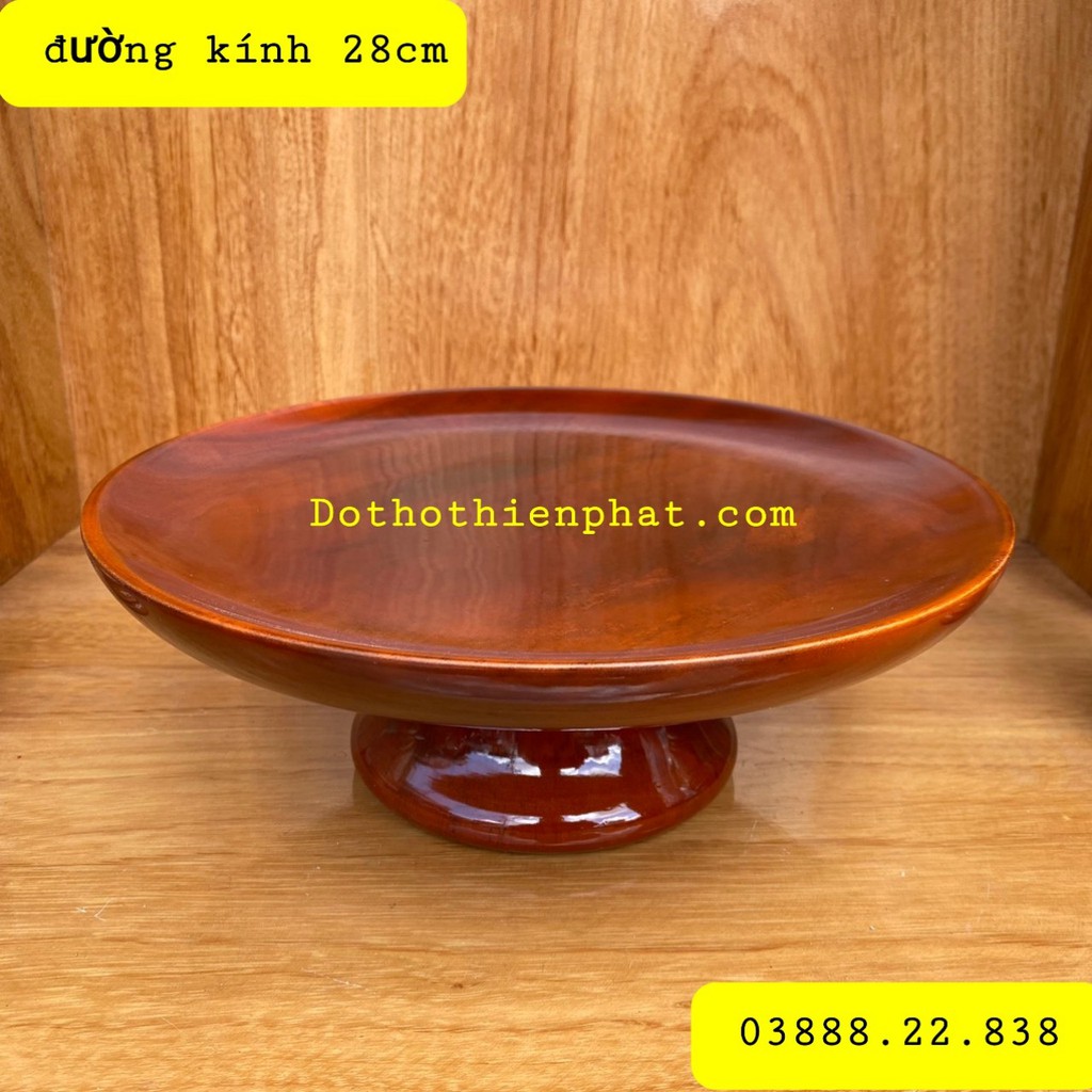 Đĩa Trái Cây Gỗ Tràm Bông Vàng Đường Kính 28cm Nguyên Khối♦ Chất Liệu : Gỗ Chàm 28cm x 12cm