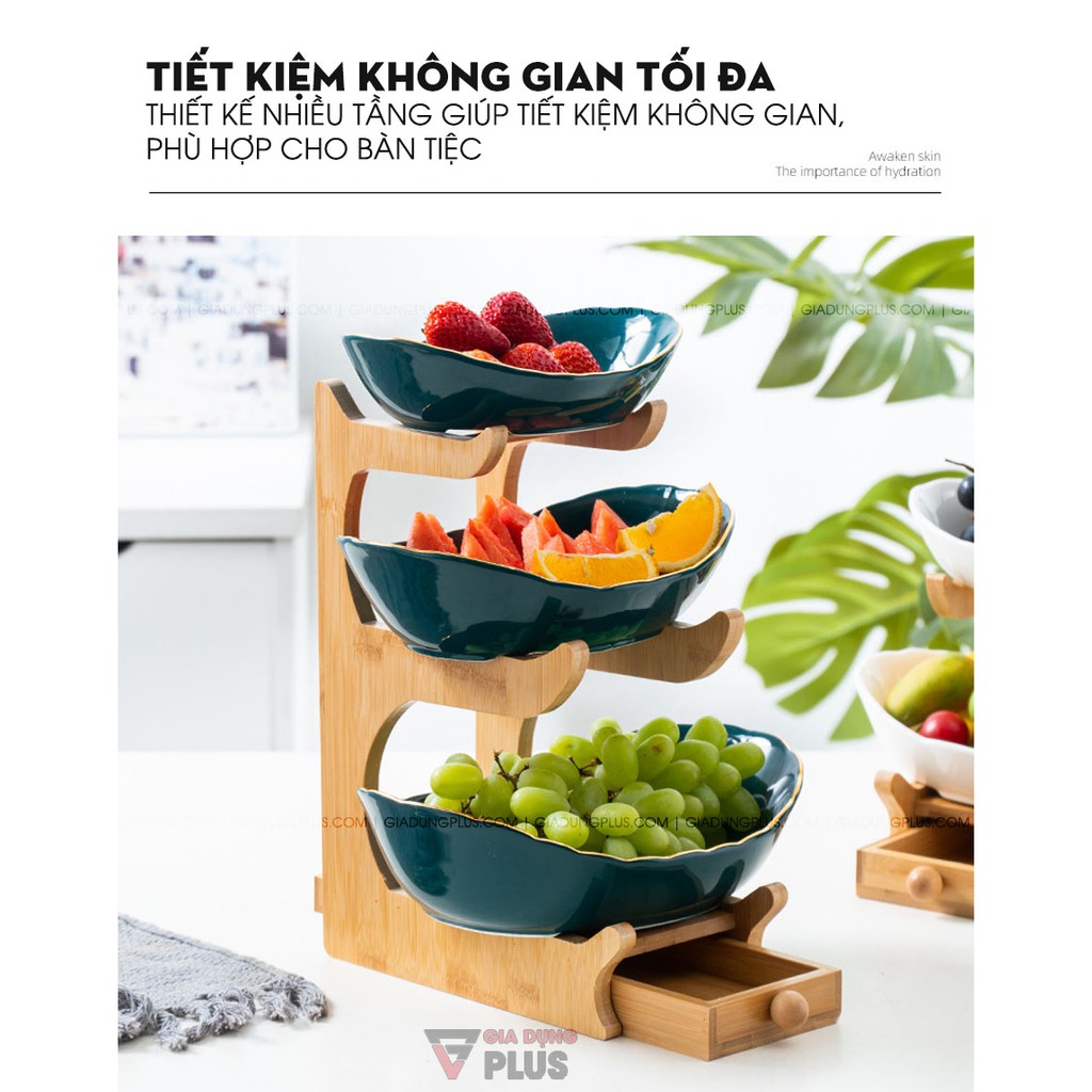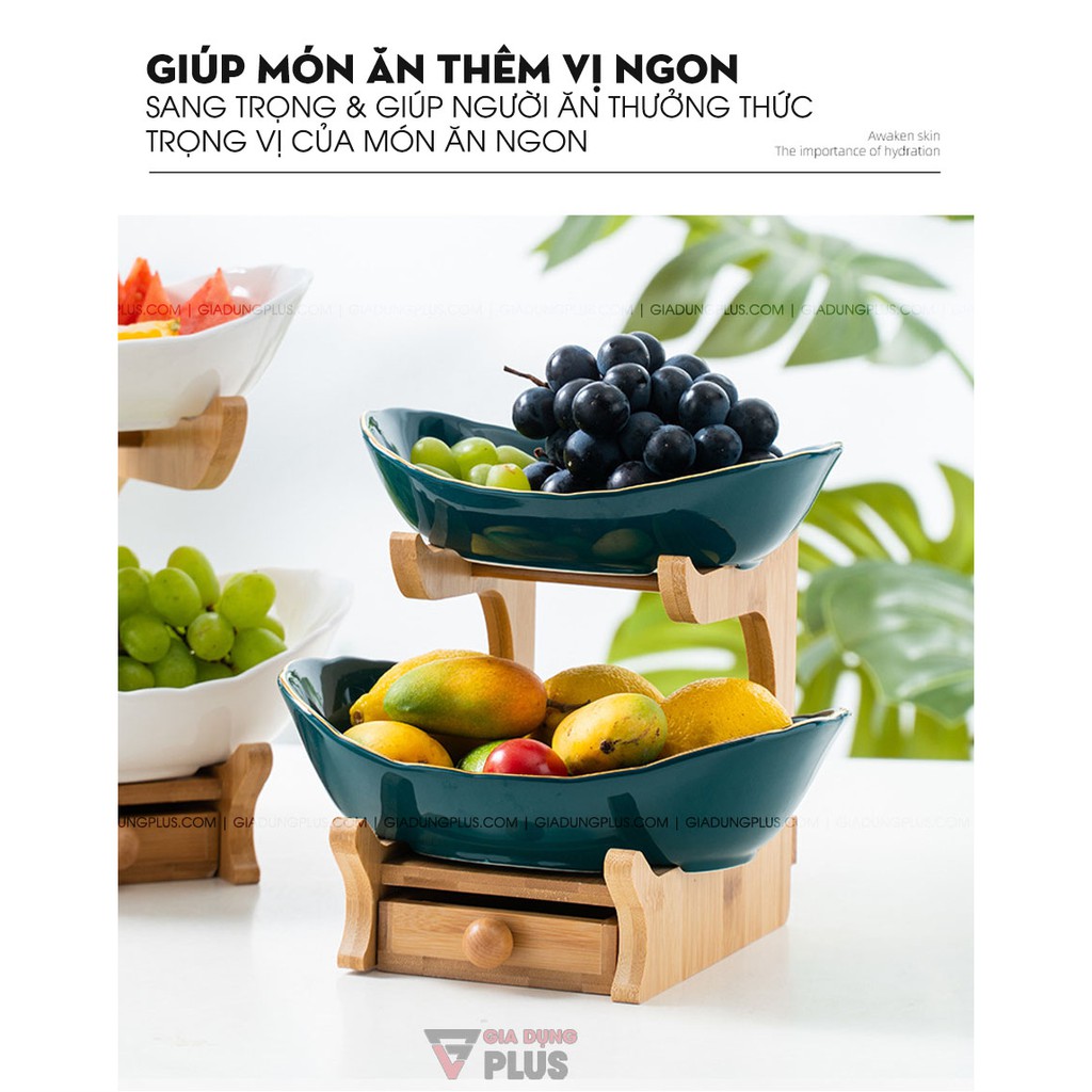 ⛔️ Mẫu shop bán có ngăn kéo như ảnh, không phải mẫu không có ngăn kéo.- Đĩa đựng trái cây, bánh kẹo đa năng kèm kệ gỗ nhiều tầng cao cấp là sản phẩm trang trí và giúp trưng bày món ăn, giúp tiết kiệm không gian bếp và bàn ăn, tạo nên vẻ ngoài sang trọng và tiếp thêm vị ngon cho từng món ăn.