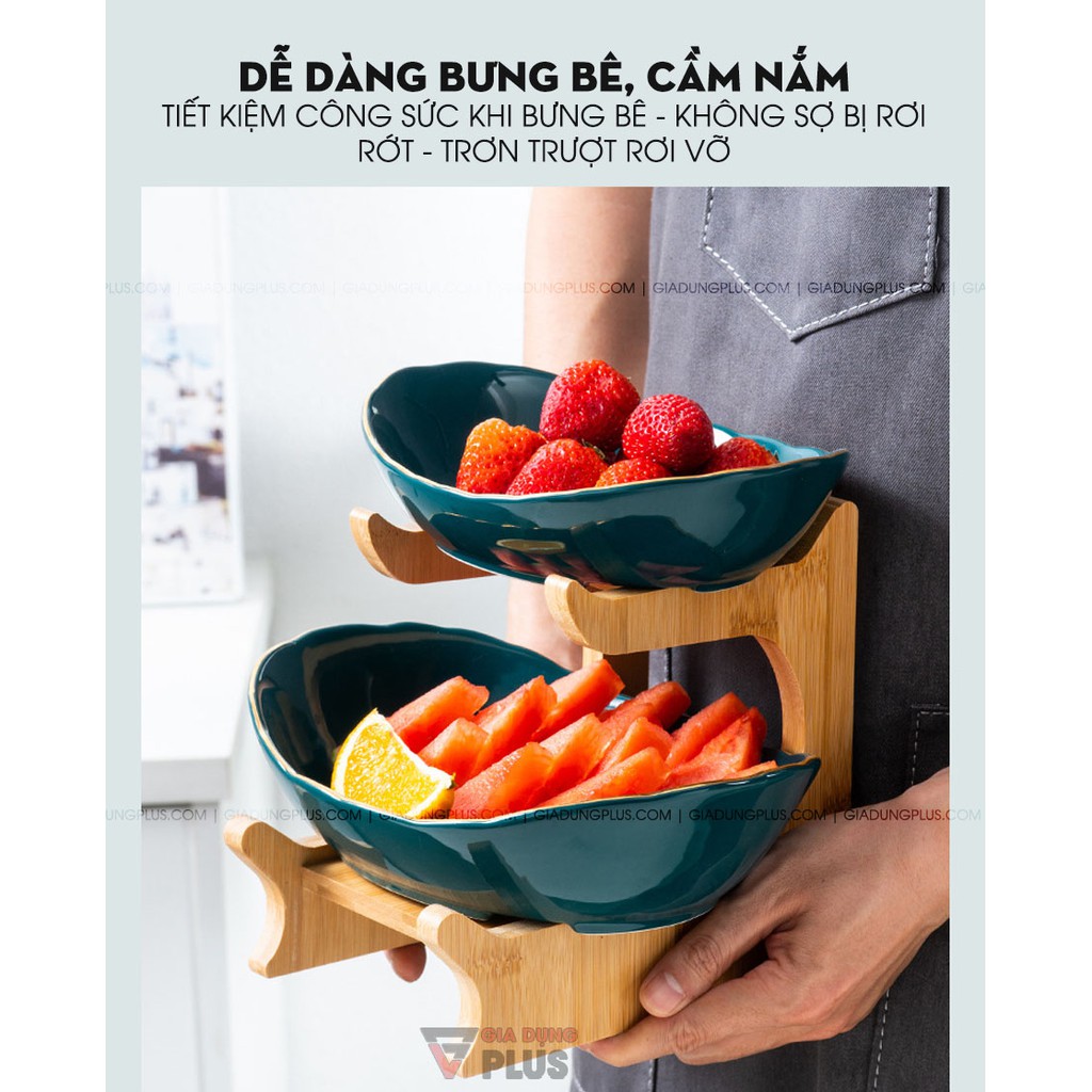 Giới thiệu Đĩa Trái Cây Gốm Sứ Nhiều Tầng Kèm Kệ Gỗ Sang Trọng | Màu Xanh Ngọc Lục Bảo & Màu Trắng | Phong Cách Bắc Âu