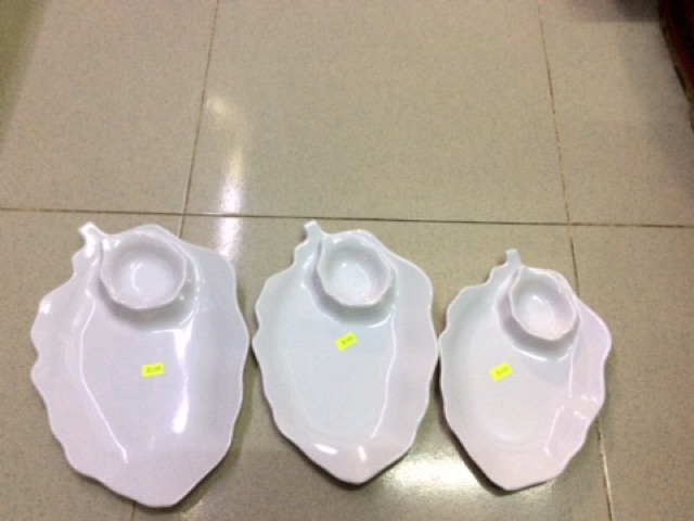 Dĩa đựng trái cây , thức ăn có ngăn chấm riêng rất tiện dụng khi khỏi phải sử dụng thêm 1 chén chấmMình có 3 size như trên ảnh nhé