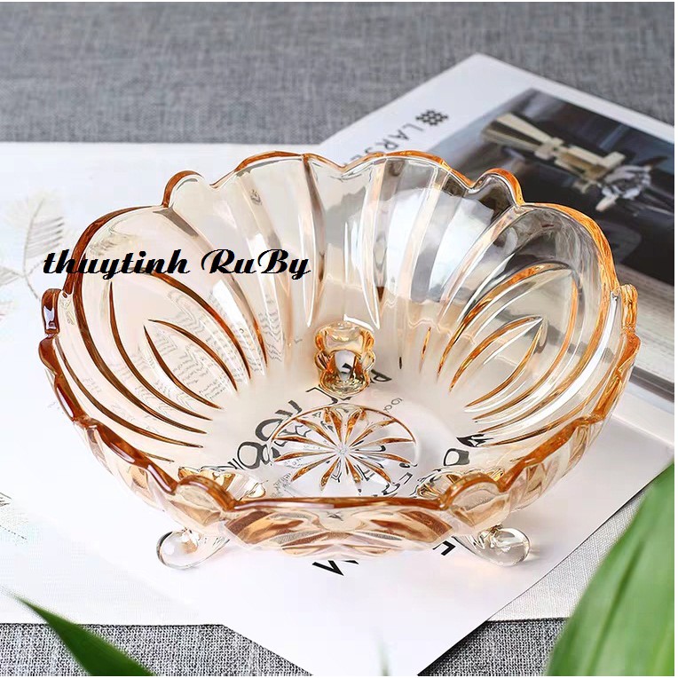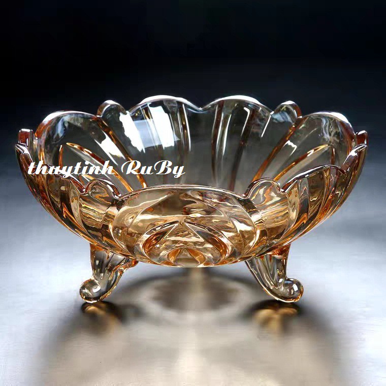 DĨA TRÁI CÂY THỦY TINH 3 CHÂN - KHAY ĐỰNG HOA QUẢ