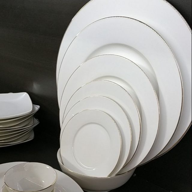Nhà cửa & Đời sống > Bộ đồ bàn ăn > Dĩa || Đĩa trắng kẻ vàng sứ cao cấp 18cm 1 cáiCòn hàng
