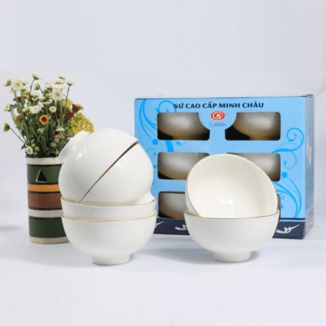 Đĩa sứ trắng chỉ vàng 12k Minh Châu. Hàng cao cấp loại 1 rộng 18cm. Giá 1 chiếcSản phẩm gốm sứ Minh Châu là 1 trong dòng sản phẩm bát đĩa sứ an toàn sức khỏe được nhiều gia đình Việt tin dùng hiện nay. Với nhiều mẫu mã đa dạng cũng như chất lượng được kiểm định nghiệm ngặt mọi sản phẩm đều an toàn với sức khỏe người tiêu dùng. Sản phẩm sứ minh châu thường được dùng làm bát đĩa nhà hàng sang trọng