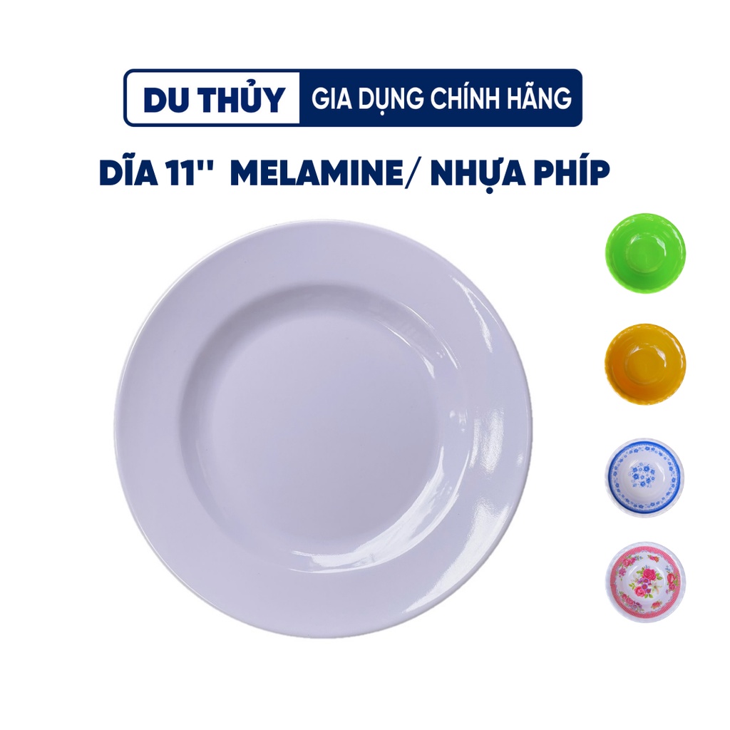 Dĩa tròn cạn 11'' 28cm nhựa melamine cao cấp màu trắng, vàng, xanh, đủ bông hạn chế nứt vỡ, bền bỉ tại gia dụng Du Thủy