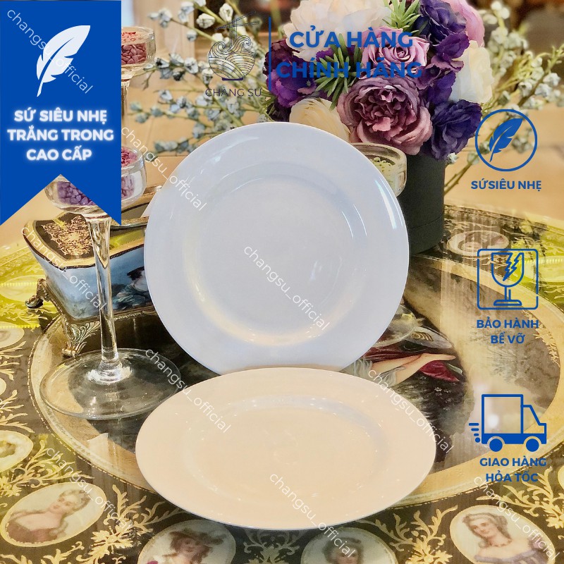 Nhà cửa & Đời sống > Bộ đồ bàn ăn > Dĩa || Đĩa tròn cạn trắng trơn sứ siêu nhẹ - Sứ xương siêu nhẹ Minh Châu - Vỡ 1 đổi 1Còn hàng