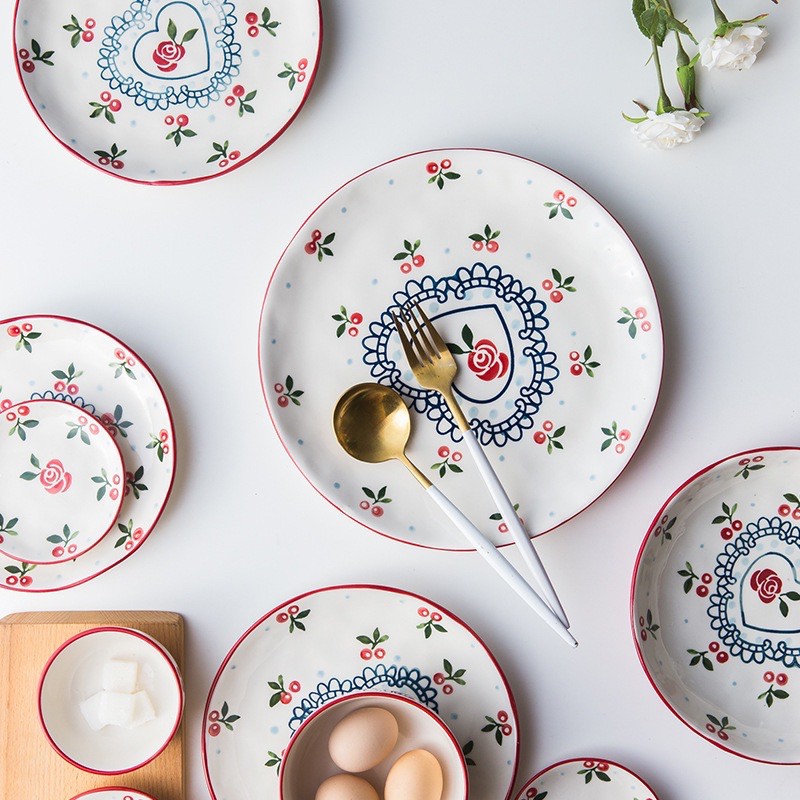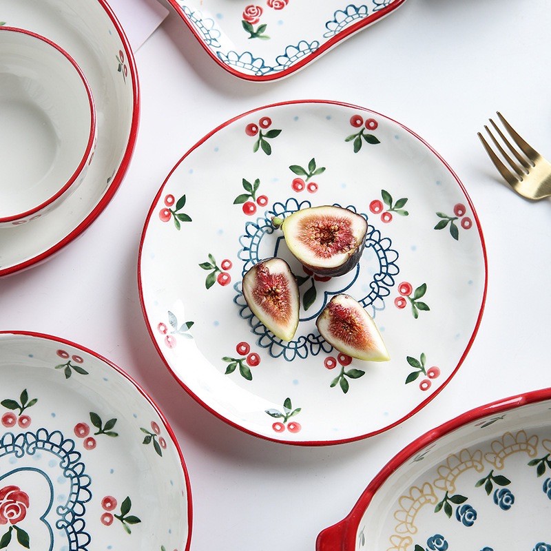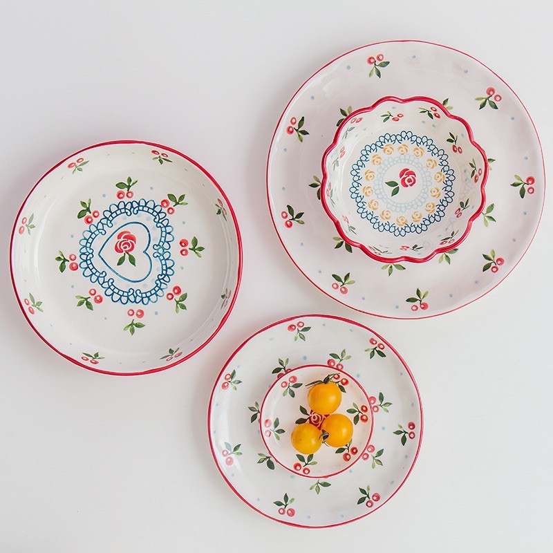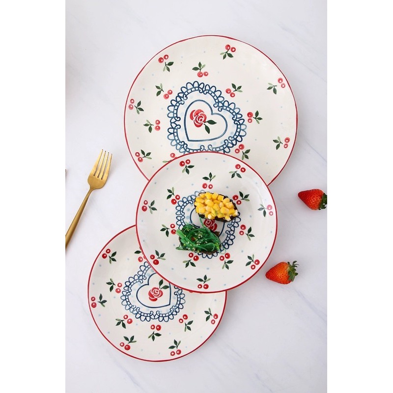 Nhà cửa & Đời sống > Bộ đồ bàn ăn > Dĩa || Đĩa tròn cherry nông lòng kiểu Bắc ÂuCòn hàng