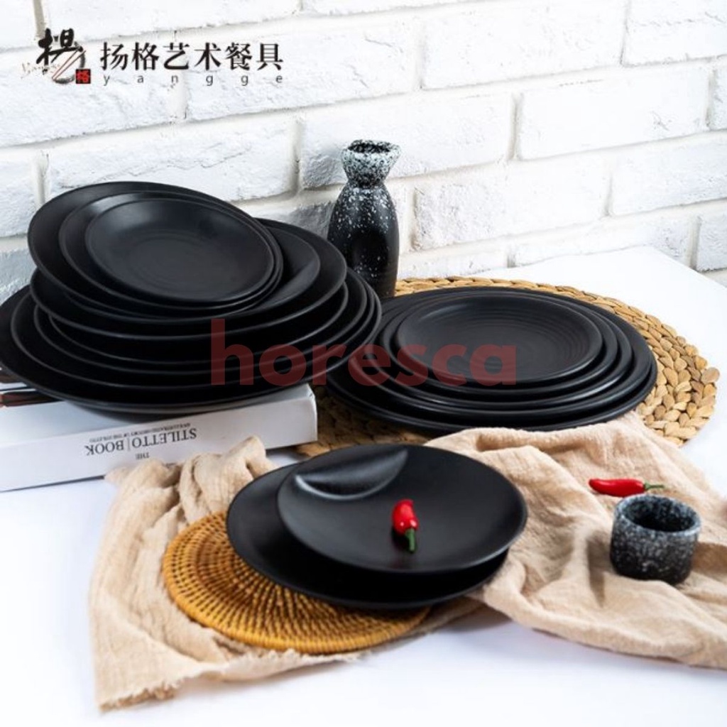 Nhà cửa & Đời sống > Bộ đồ bàn ăn > Dĩa || Đĩa tròn đen nhám (CAO CẤP) Đĩa melamine 100% tròn sâu lòng có vân đẹpCòn hàng