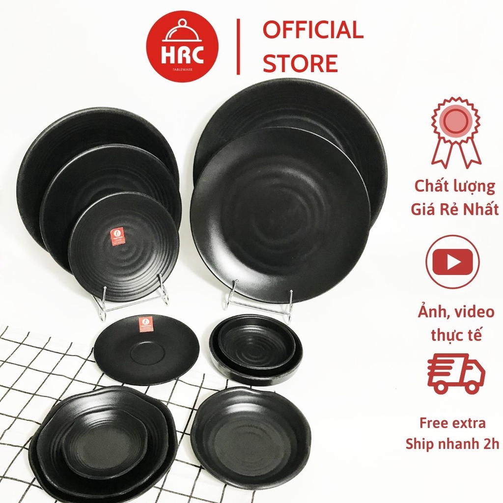 Đĩa tròn đen nhám (CAO CẤP) Đĩa melamine 100% tròn sâu lòng có vân đẹp