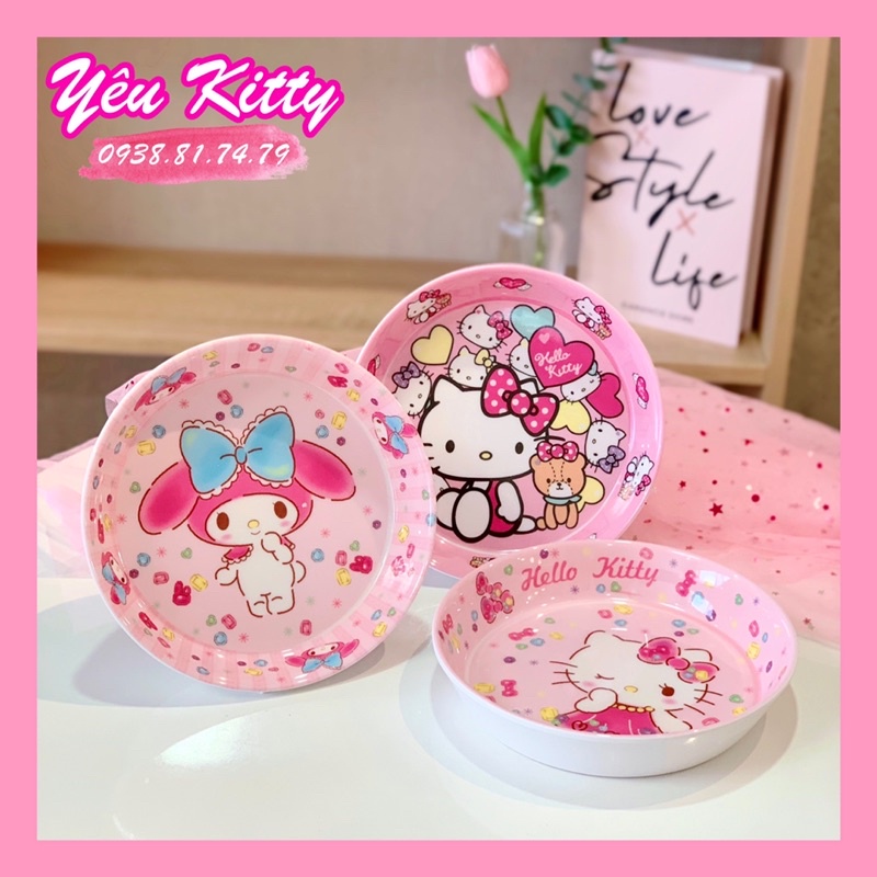 🍀DĨA TRÒN HELLO KITTY MELODY CỠ TRUNG🍀- Chất liệu : nhựa melamine cao cấp.