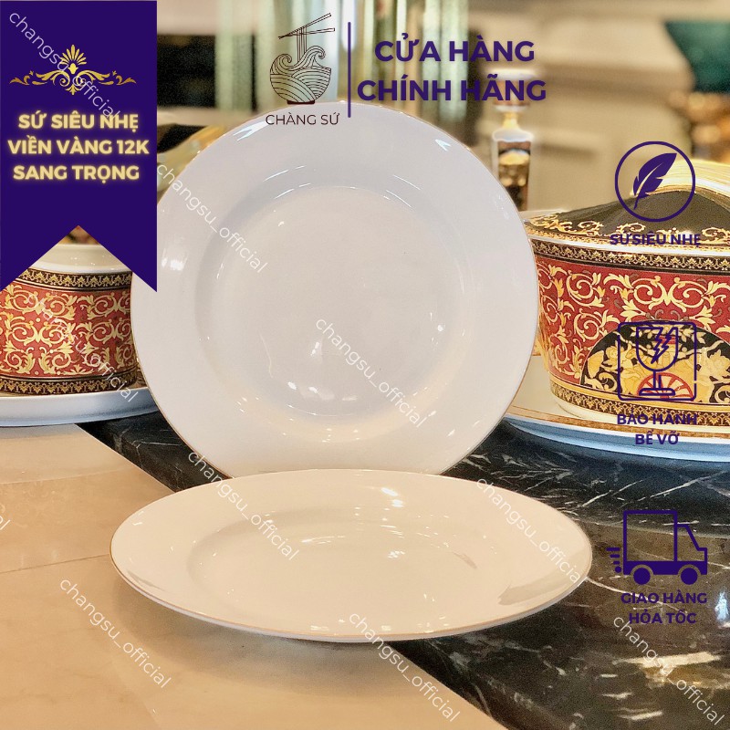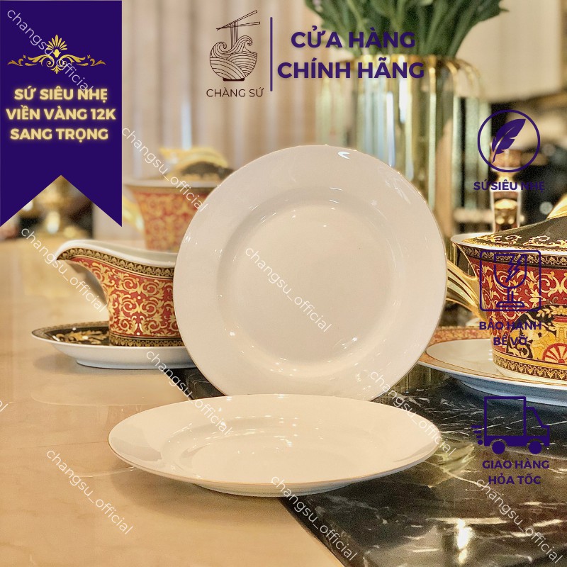 Nhà cửa & Đời sống > Bộ đồ bàn ăn > Dĩa || Đĩa tròn lòng nông viền vàng sứ siêu nhẹ - Sứ xương siêu nhẹ Minh Châu - Vỡ 1 đổi 1Còn hàng