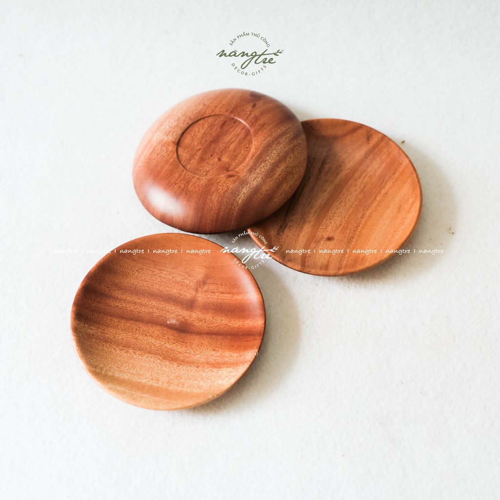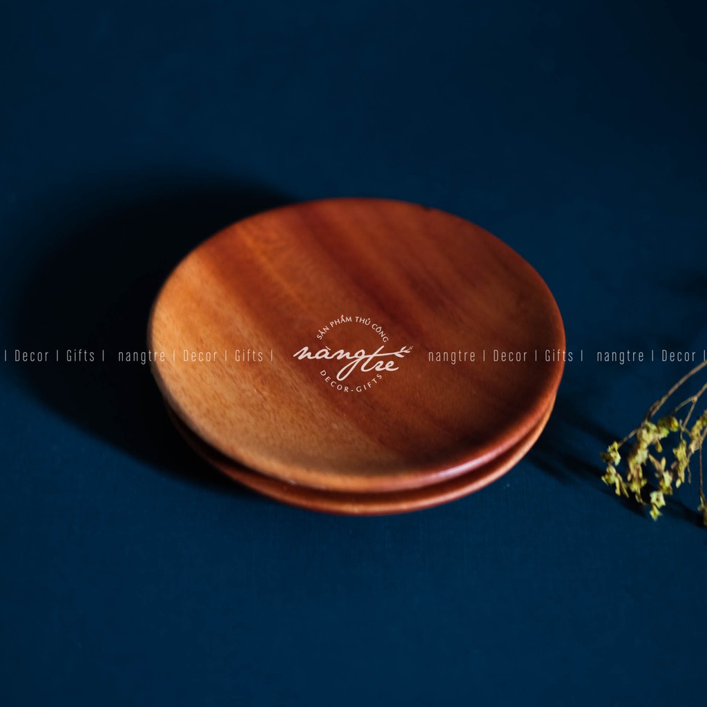 Dĩa tròn mini bằng gỗ tự nhiên nguyên khối
