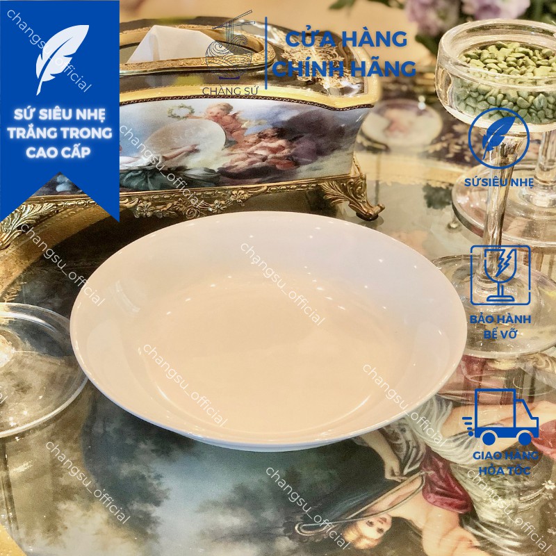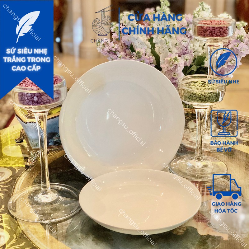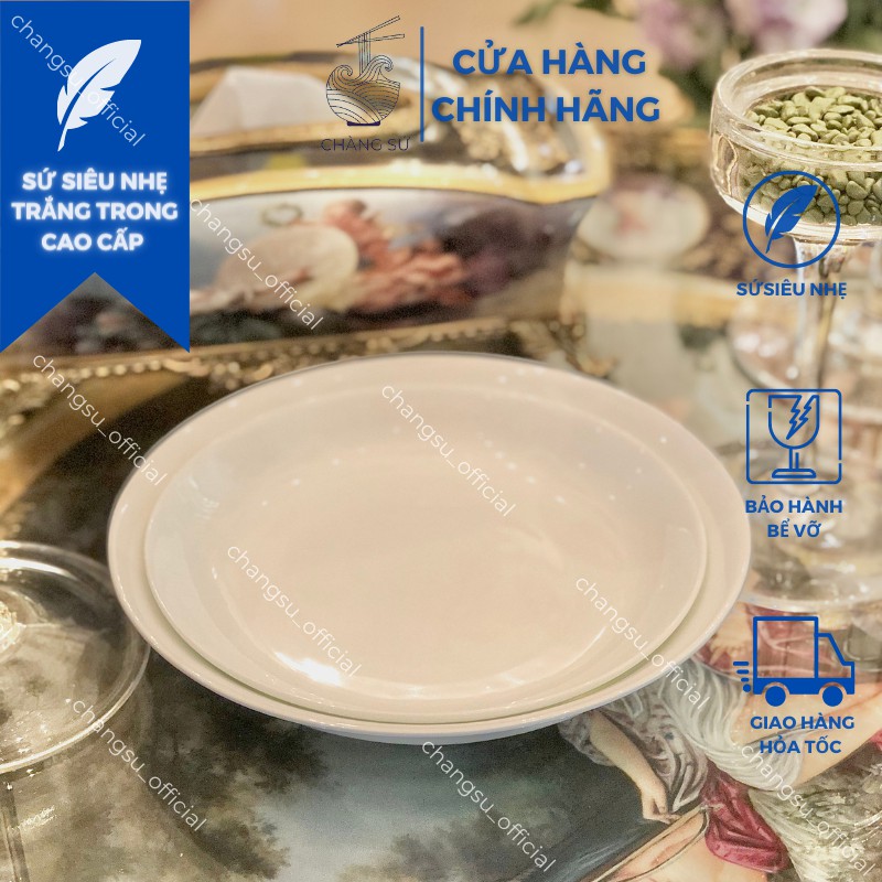 Đĩa tròn sâu lòng trắng trơn sứ siêu nhẹ - Sứ xương siêu nhẹ Minh Châu