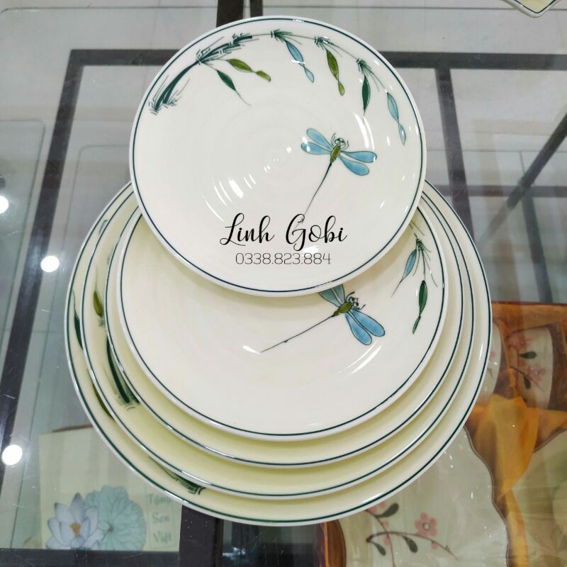 Nhà cửa & Đời sống > Bộ đồ bàn ăn > Tô || Đĩa tròn Vẽ trúc chuồn chỉ xanh men kemCòn hàng