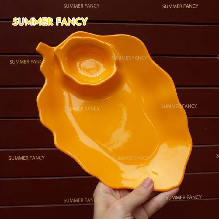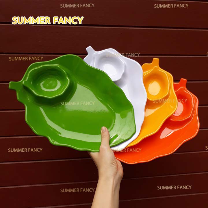 Dĩa tương lá 28cm melamine phíp cao cấp - Leaf shape dish F-DTC07