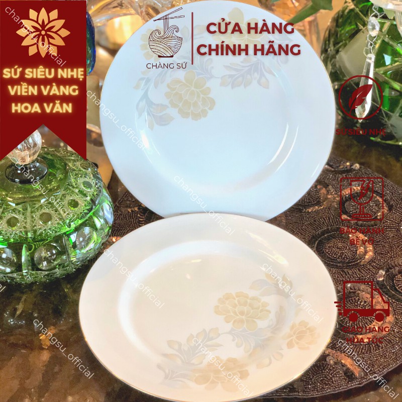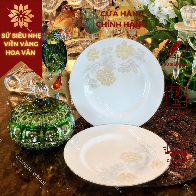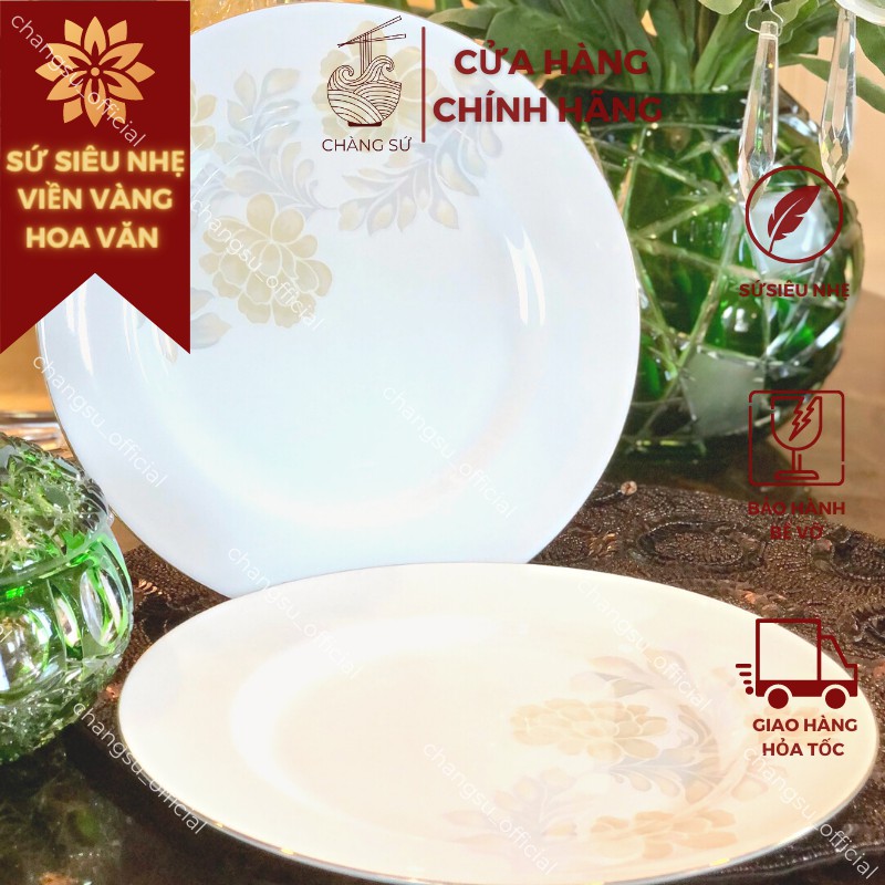 Nhà cửa & Đời sống > Bộ đồ bàn ăn > Dĩa || Đĩa viền chỉ vàng hoa văn sứ siêu nhẹ - Sứ xương siêu nhẹ Minh ChâuCòn hàng