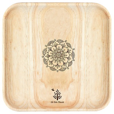 Giới thiệu Dĩa Vuông Có Hoạ Tiết Dễ Thương - Kích Thước 24 x 24 x 2 cm - Gỗ Đức Thành - Gỗ Cao Su Bền Đẹp Sang Trọng