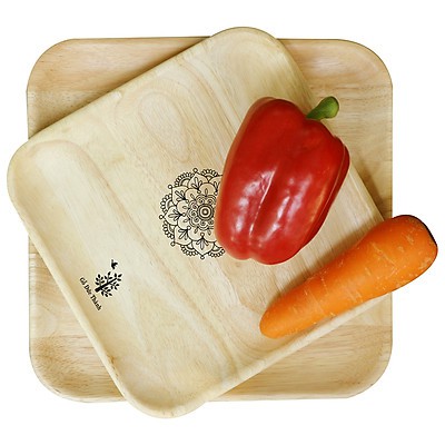 Nhà cửa & Đời sống > Bộ đồ bàn ăn > Dĩa || Dĩa Vuông Có Hoạ Tiết Dễ Thương - Kích Thước 24 x 24 x 2 cm - Gỗ Đức Thành - Gỗ Cao Su Bền Đẹp Sang TrọngCòn hàng