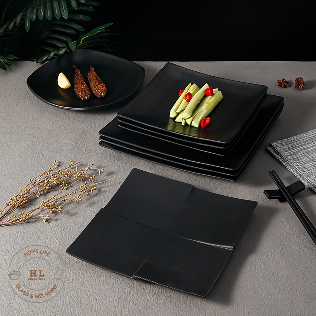 Nhà cửa & Đời sống > Bộ đồ bàn ăn > Dĩa || Đĩa vuông đen | Đĩa Melamine A5 Vuông Vân Xoáy LJP1088 LJP1098 LJP1108 LJP1108 WKP4009 P4007 Chống Cháy Đài LoanCòn hàng