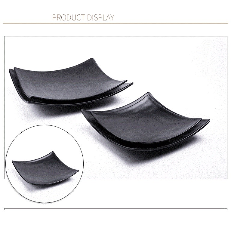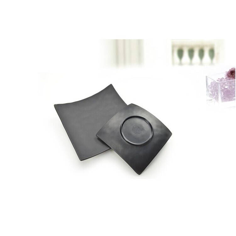 Dĩa Vuông melamine cao cấp màu đen sâu lòng nằm trong bộ sản phẩm nhập khẩu phong cách Hàn Quốc, Nhật Bản.
