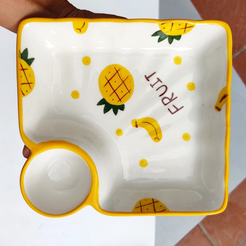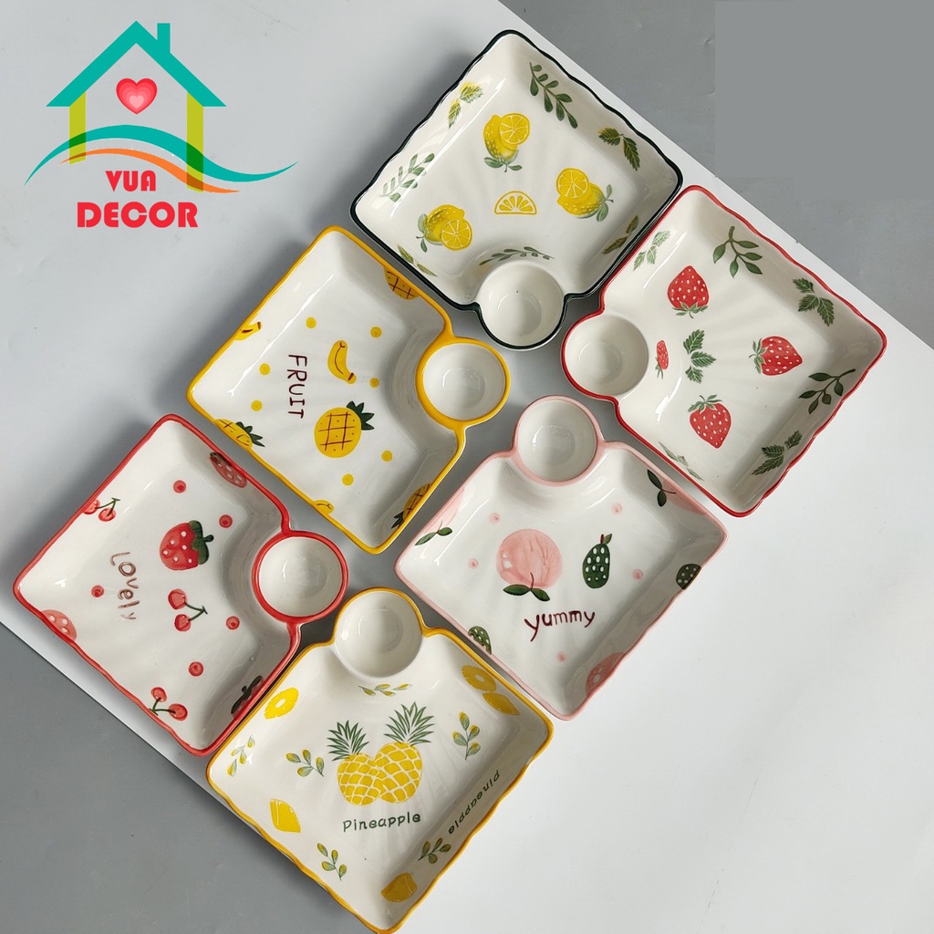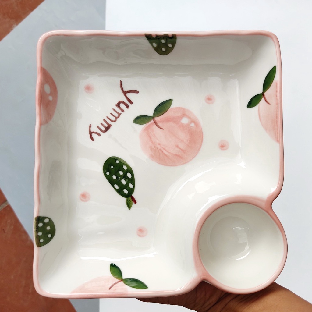 Đĩa Vuông Ngăn Châm Chén Sứ Bát Ăn Cơm Bộ Bát Đĩa Decor Chén Dĩa Sứ Dễ Thương Cute Cao Cấp S22