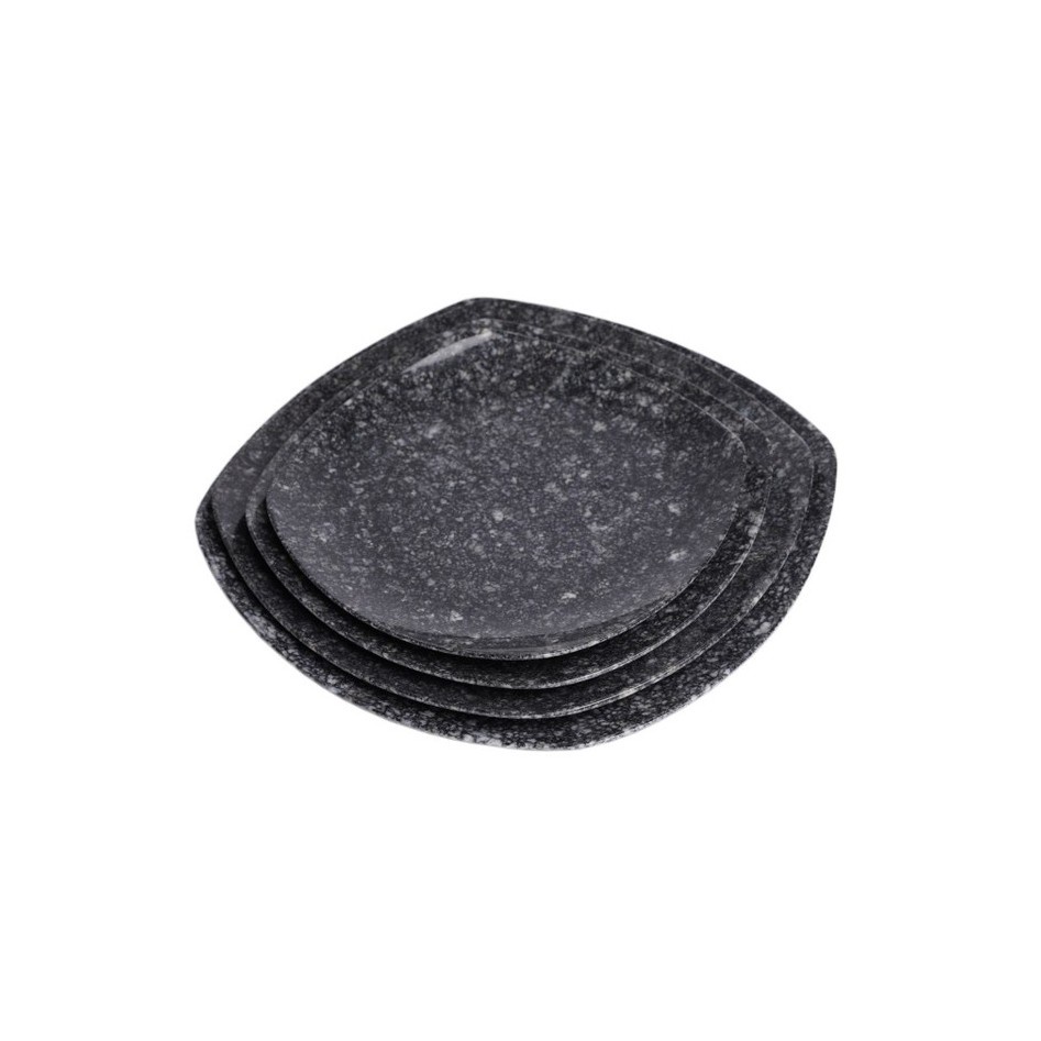 Dĩa vuông nhựa Melamine Vân Đá Kem/Đen size 20.3cm (DV06) Summer Fancy