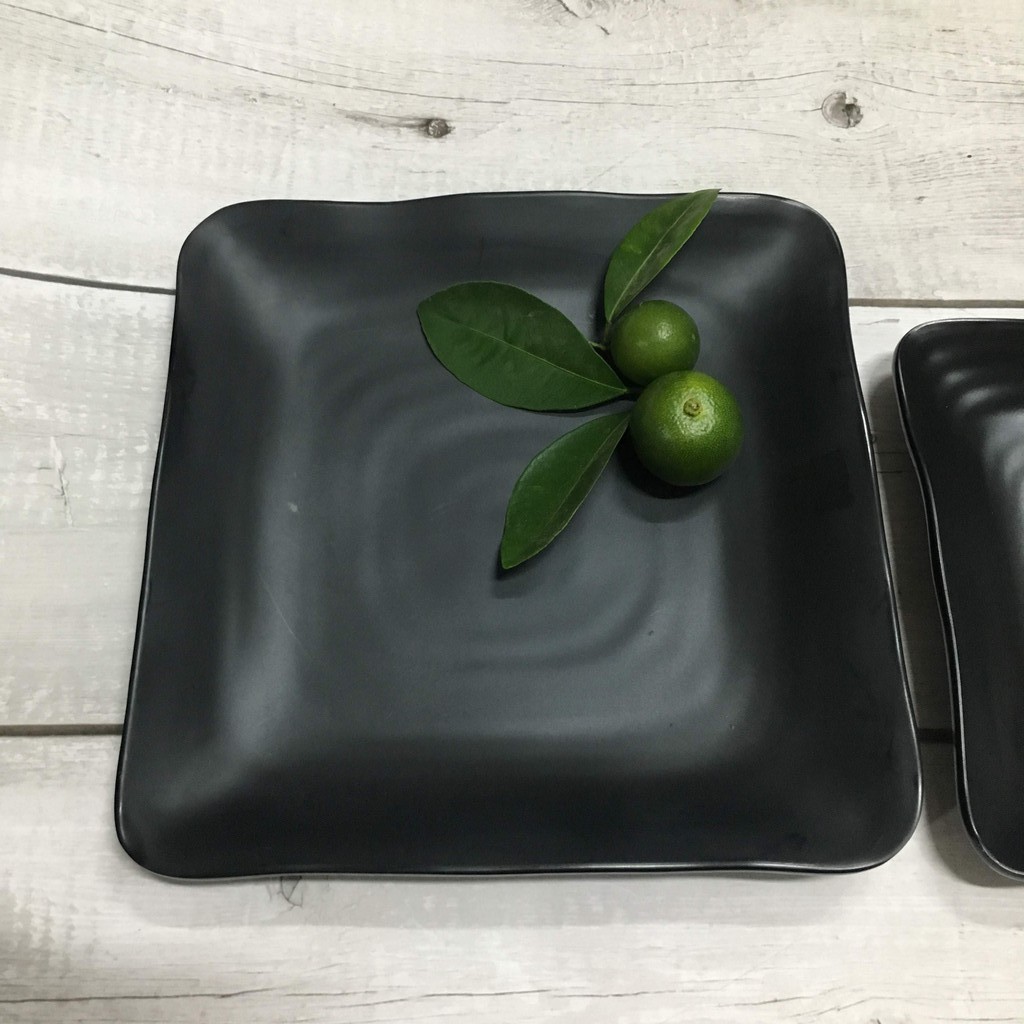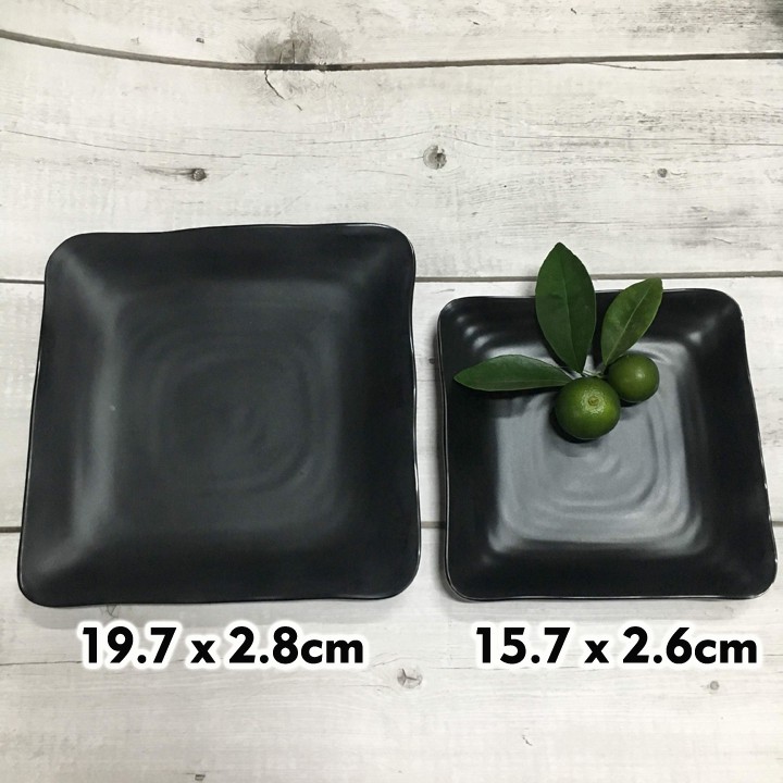Dĩa vuông size 19.7cm nhựa melamine phíp màu đen nhám, ngói nhám - Dish plate F-DV118N