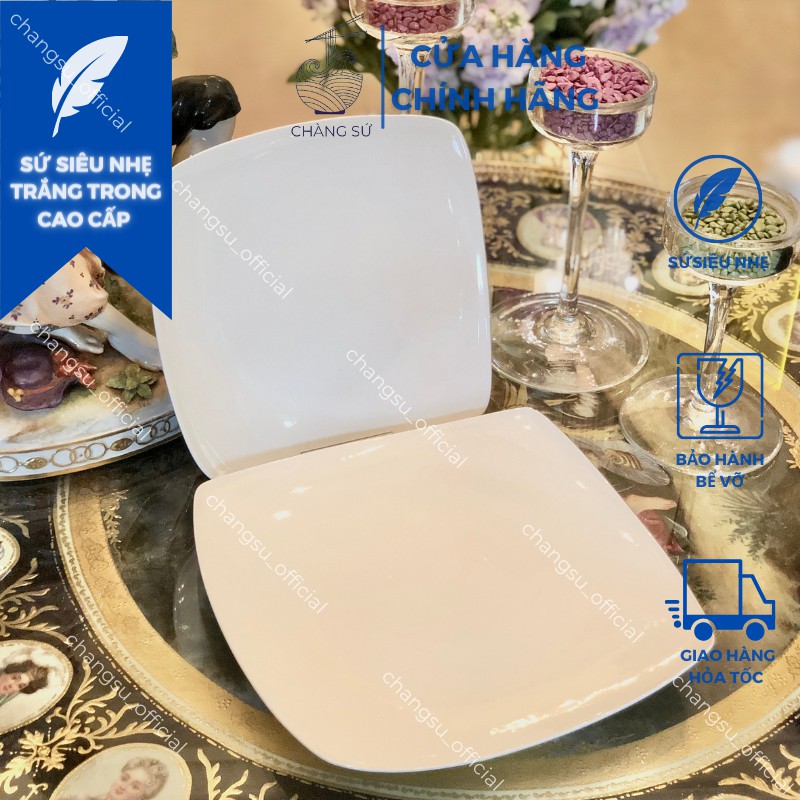 Đĩa vuông sứ siêu nhẹ trắng trơn thanh lịch - Sứ xương siêu nhẹ Minh Châu