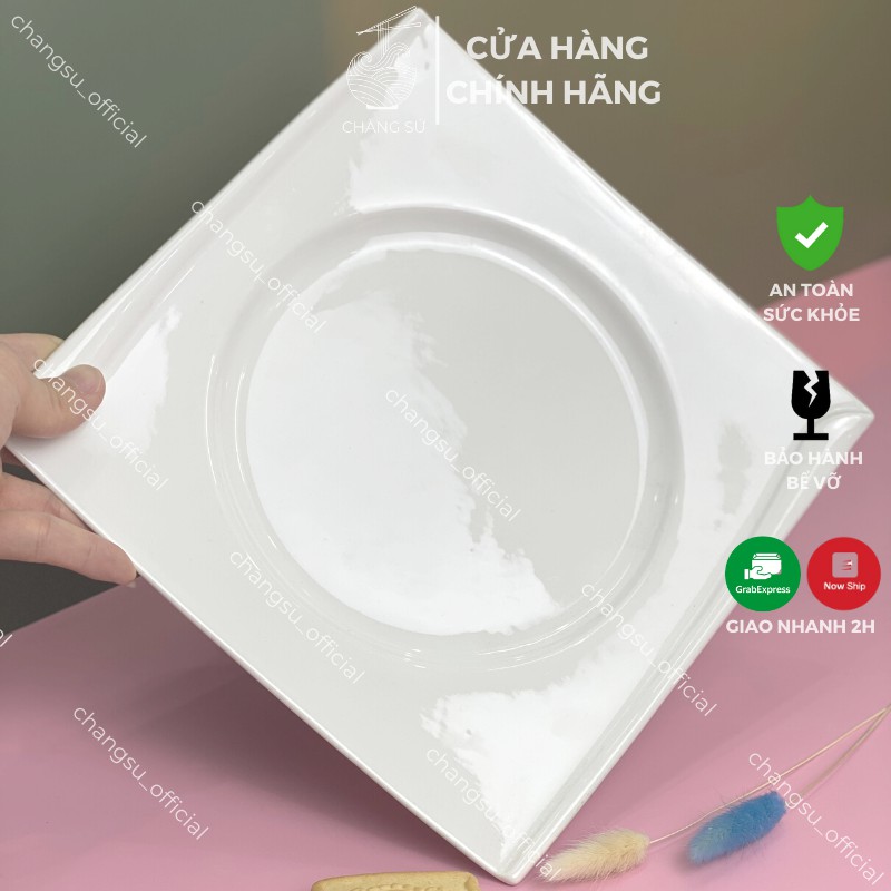 Nhà cửa & Đời sống > Bộ đồ bàn ăn > Dĩa || Đĩa vuông sứ trắng gấp viền decor trang trí độc đáo sứ Minh ChâuCòn hàng