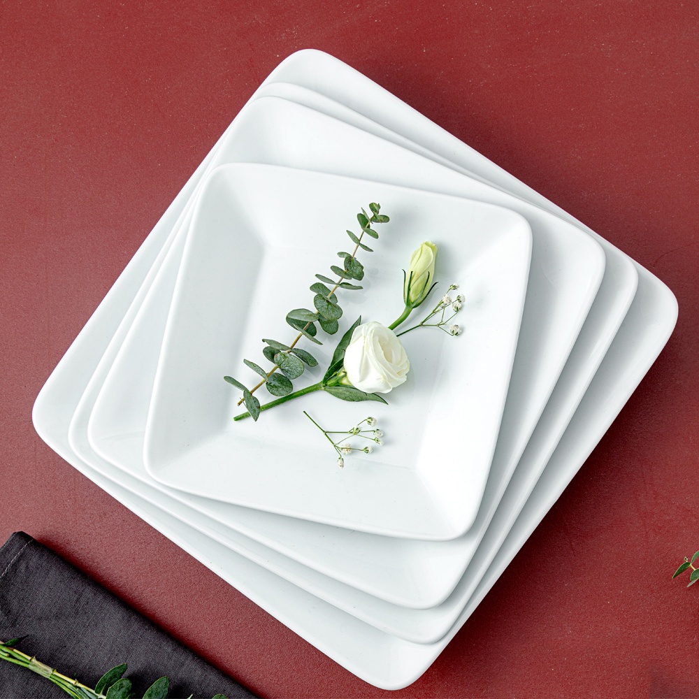 Nhà cửa & Đời sống > Bộ đồ bàn ăn > Dĩa || Đĩa Vuông Sứ Trắng Long Phương Kích Thước 7Inch, 8InchCòn hàng