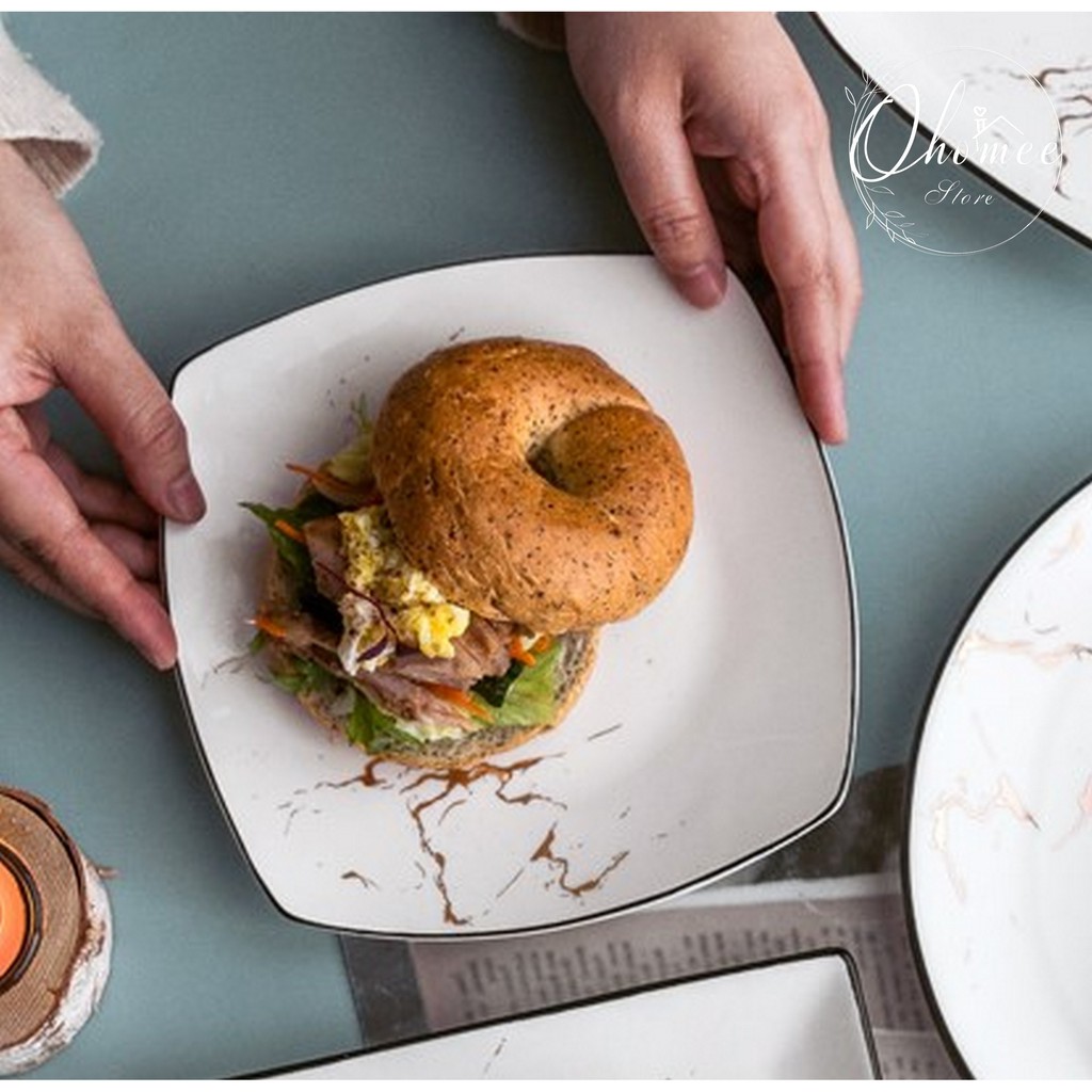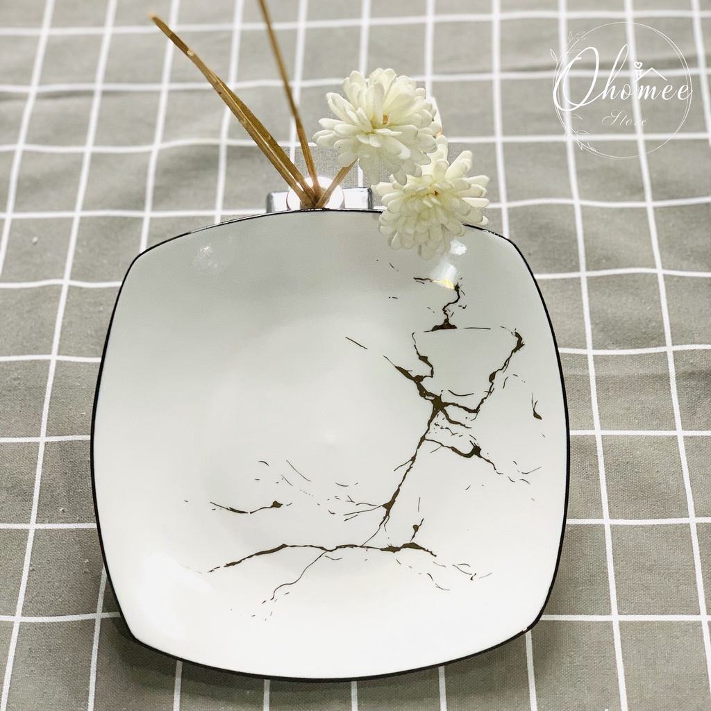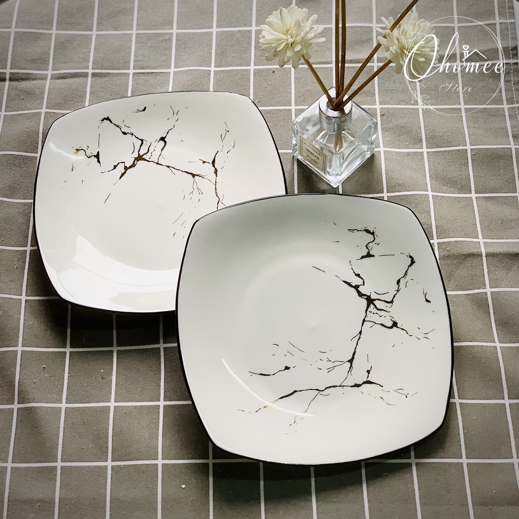 Nhà cửa & Đời sống > Bộ đồ bàn ăn > Dĩa || Đĩa vuông tròn vân đá vàng phong cách Bắc Âu sang trọng, tinh tếCòn hàng