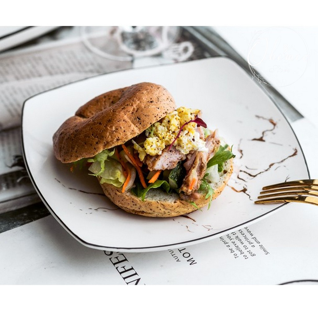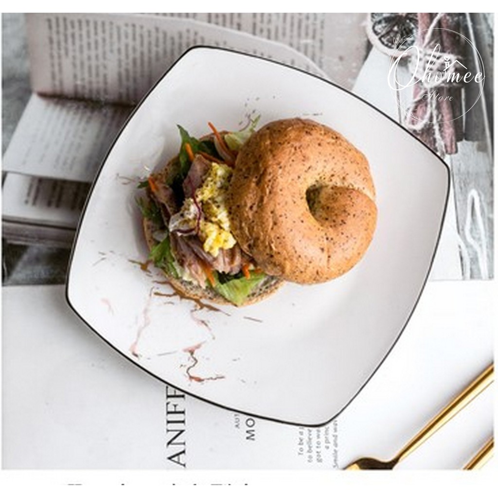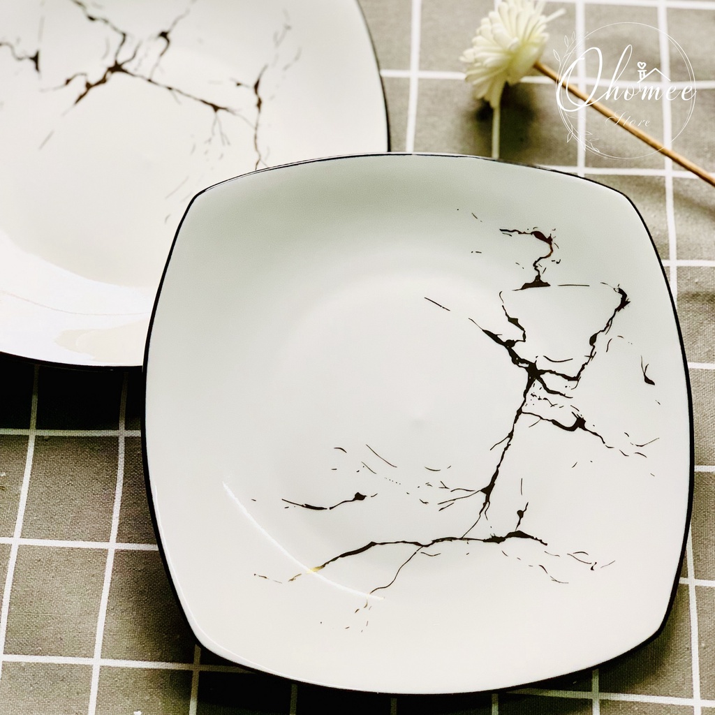 Nhà cửa & Đời sống > Bộ đồ bàn ăn > Dĩa || Đĩa vuông tròn vân đá vàng phong cách Bắc Âu sang trọng, tinh tếCòn hàng