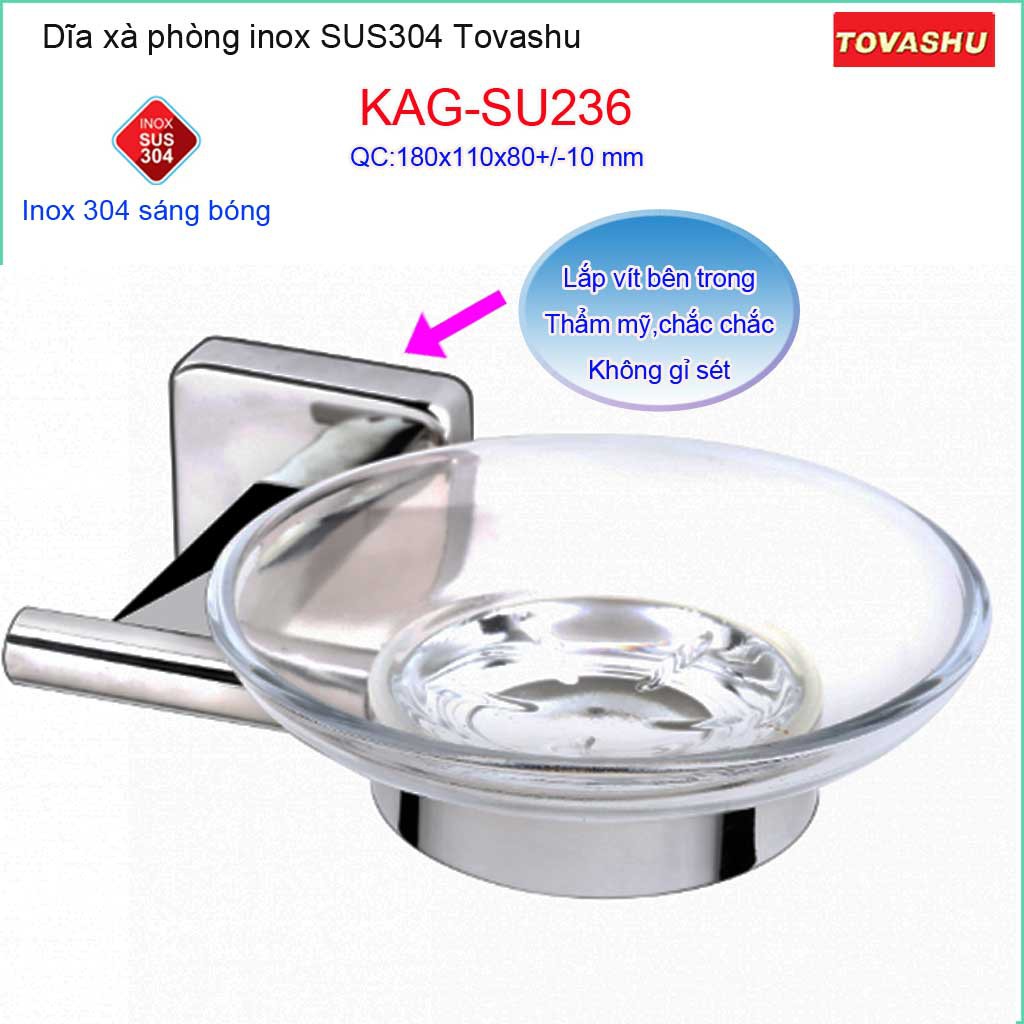 Dĩa xà phòng Tovashu KAG-304SU236, kệ xà bông cục inox SUS304 Nhật cao cấpKích thước 100mm x120mmx 40mm