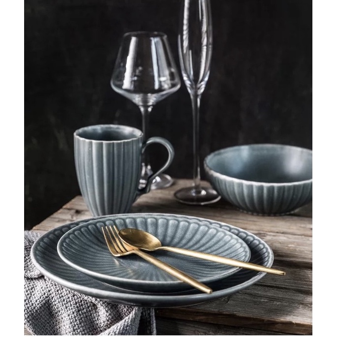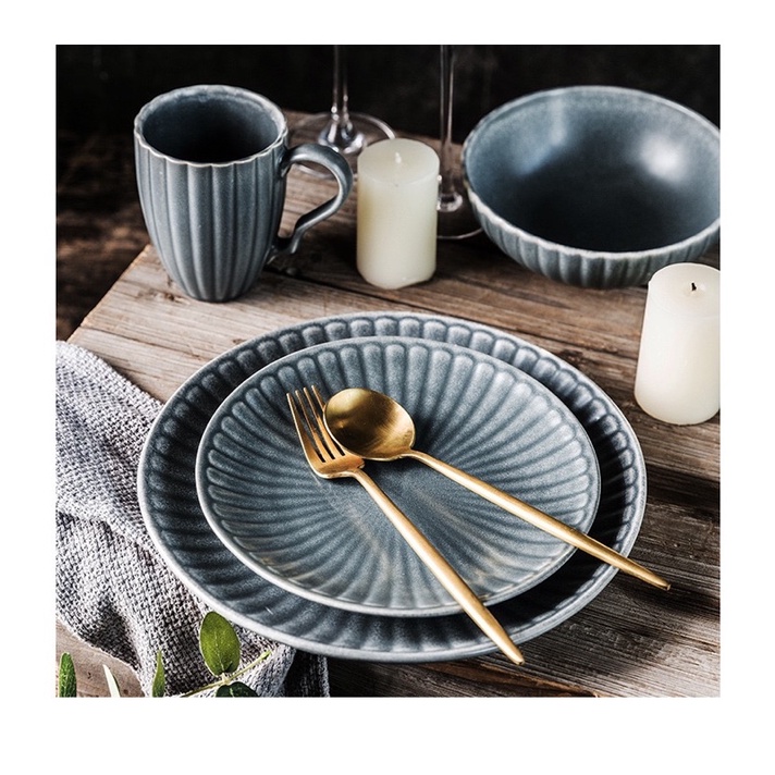 Nhà cửa & Đời sống > Bộ đồ bàn ăn > Dĩa || Đĩa Xanh Đá Viền Hoa Cúc cao cấp, Đĩa sứ Bắc ÂuCòn hàng