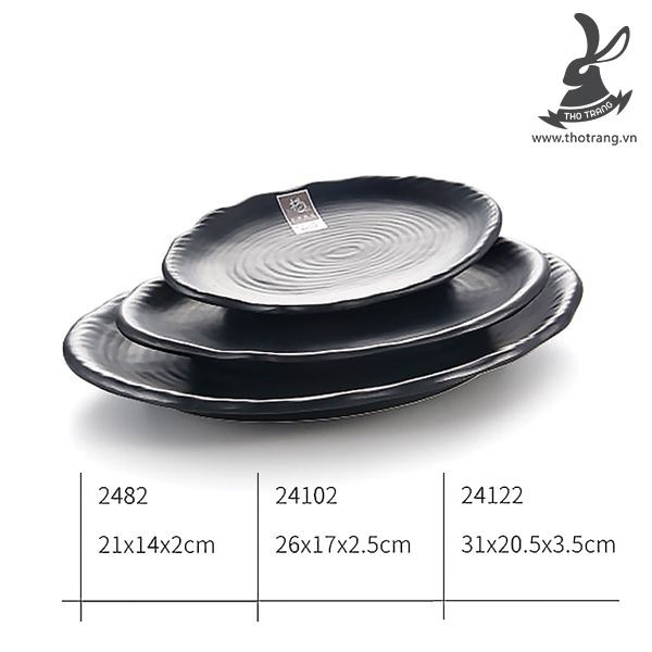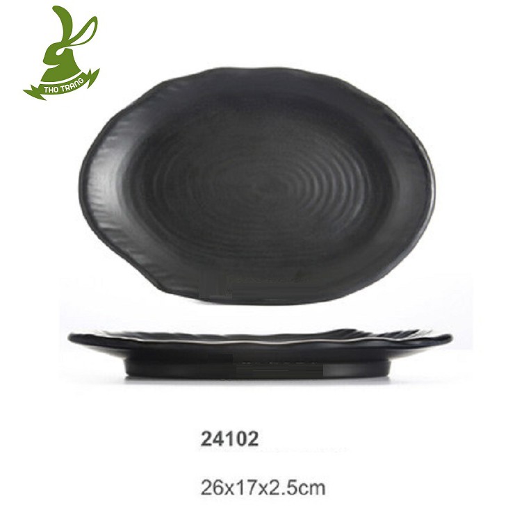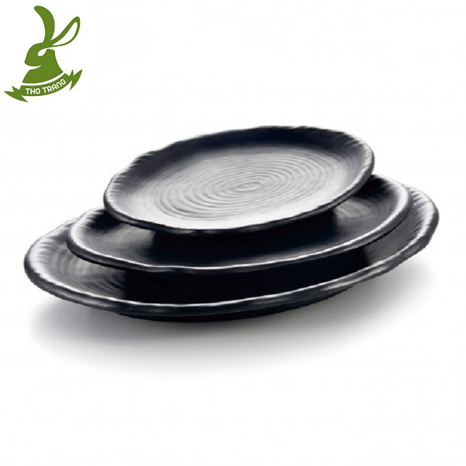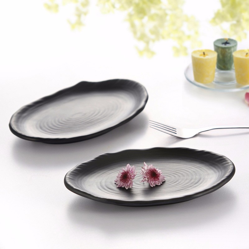 Nhà cửa & Đời sống > Bộ đồ bàn ăn > Dĩa || Dĩa xoài màu đen có vân nhám ở trong bằng nhựa melamineCòn hàng