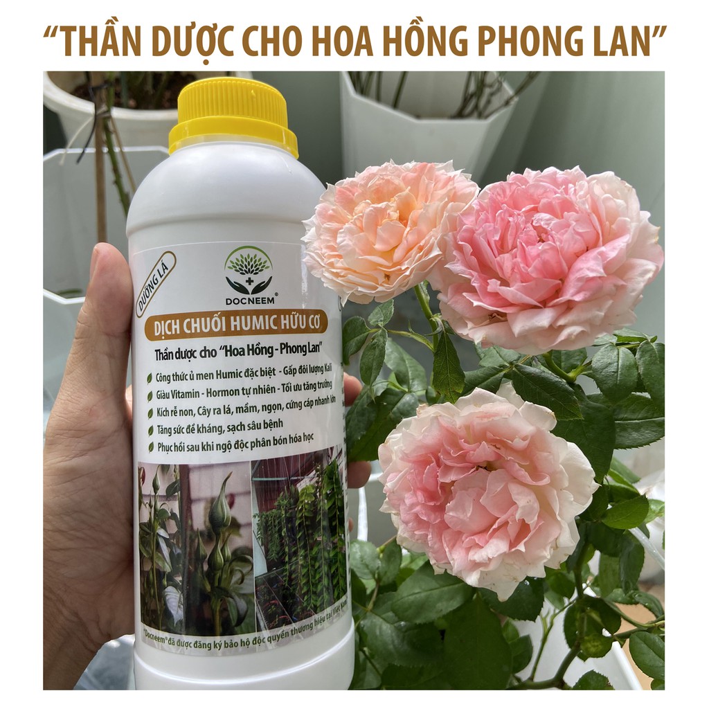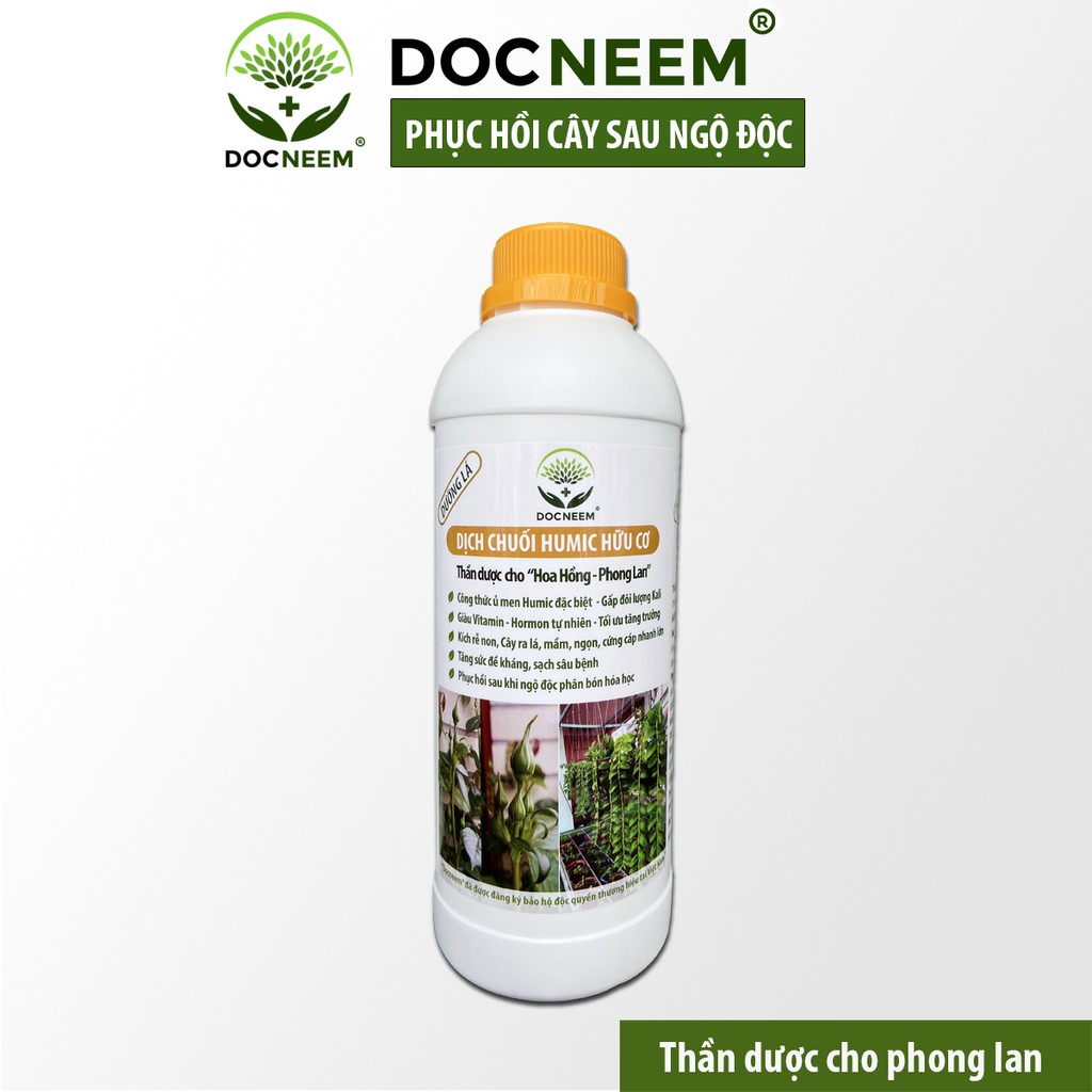 Giới thiệu Dịch chuối Humic hữu cơ DOCNEEM, phân bón hoa hồng, lan, cây cảnh, bông to, hoa sai, đậm màu, lâu tàn, dung tích 1 lít