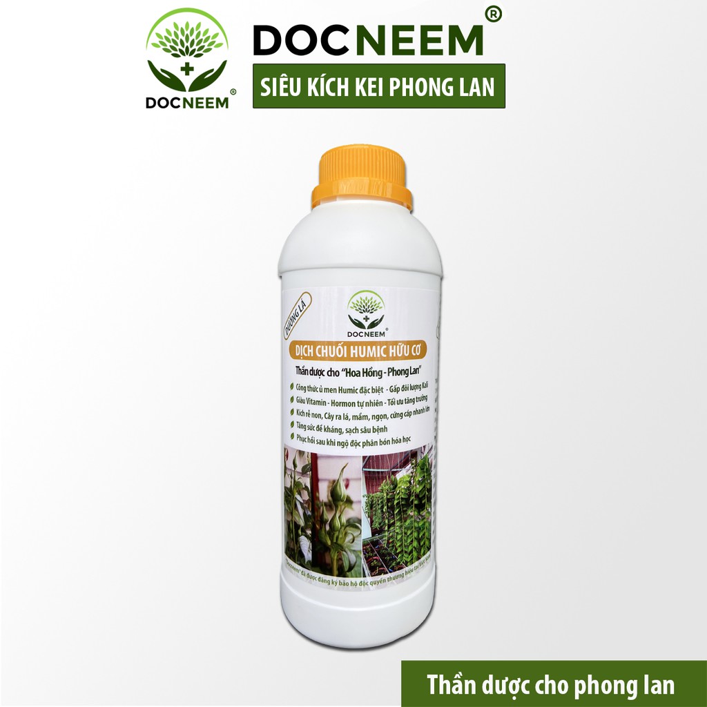 Dịch chuối Humic hữu cơ DOCNEEM, phân bón hoa hồng, lan, cây cảnh, bông to, hoa sai, đậm màu, lâu tàn, dung tích 1 lít