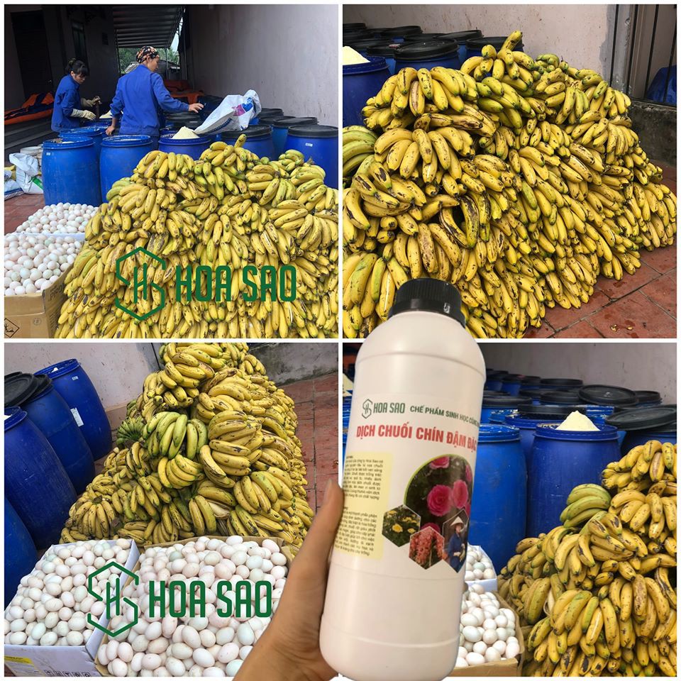 Dịch chuối bên em có 70% là chuối chín, 30% là trứng và Humic, lên men trong vòng 2 tháng.