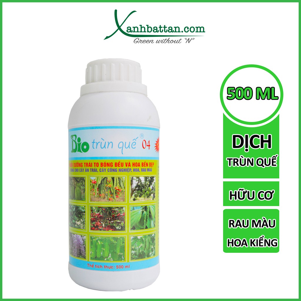 Dịch Trùn Quế Hữu Cơ Bio 04Dịch Trùn Quế Hữu Cơ Bio 04 là dòng sản phẩm của Trung Tâm Công Nghệ Sinh Học TPHCM. Dòng sản phẩm dịch trùn quế Bio được sản xuất từ nguồn trùn quế tươi, qua công nghệ thủy phân bằng hệ enzyme phân hủy nhằm tạo ra chế phẩm chứa hàm lượng khoáng NPK, amino acid và hệ vi sinh vật có lợi cho cây trồng một cách dồi dào. Dịch trùn quế Bio 04 có chức năng chính trong giai đoạn ươm mầm cây con, giúp dưỡng hoa, hạn chế rụng hoa, tăng khả năng đậu quả cho cây trồng.