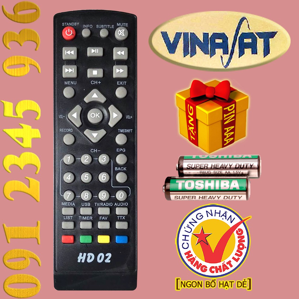 Thiết Bị Điện Gia Dụng > Tivi & Phụ kiện > Tivi box & Đầu thu kĩ thuật số || Điều khiển HD-02 cho đầu chảo vệ tinh VINASAT DVB-S2 / T2 và VTC-HD02.Còn hàng