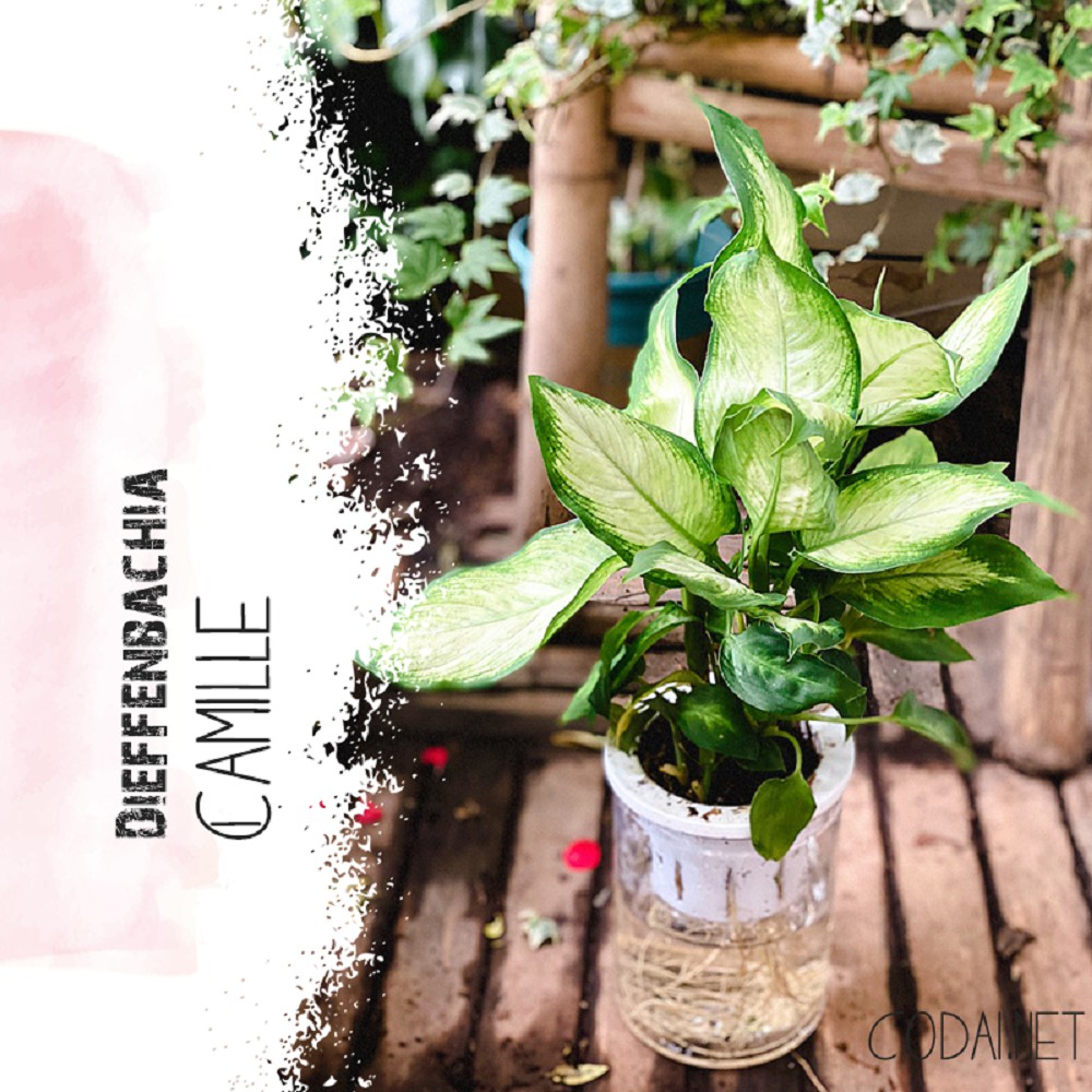 Nhà cửa & Đời sống > Làm vườn > Cây cảnh || Cây Dieffenbachia Camille (Môn Trường Sinh Camille) chậu thuỷ sinh 2 lớp không cần tướiCòn hàng