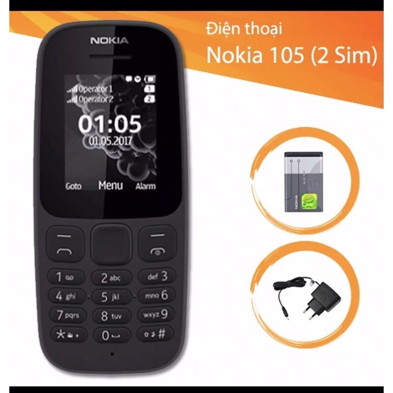 Điện Thoại & Phụ Kiện > Điện thoại || Điện thoại Nokia 105 Dual SIM (2 sim) và 1 sim - Hàng Chính hãng máy cũ đã bao gồm bin + sạcCòn hàng