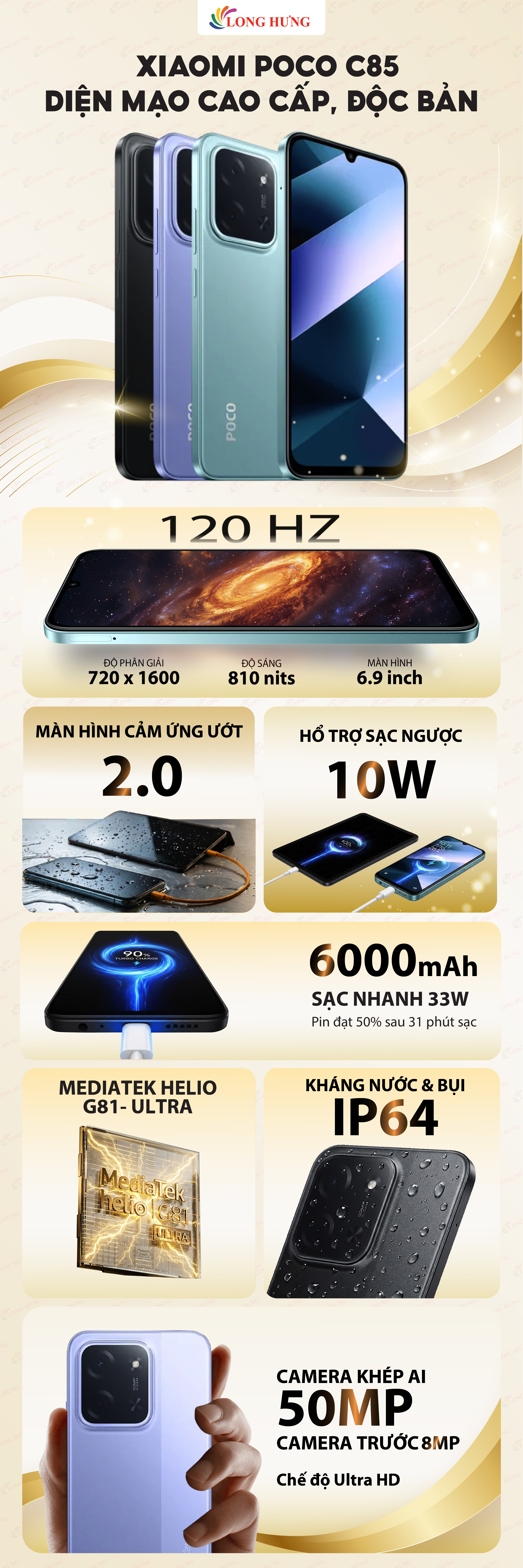 - Hỗ trợ sạc nhanh tiện lợi