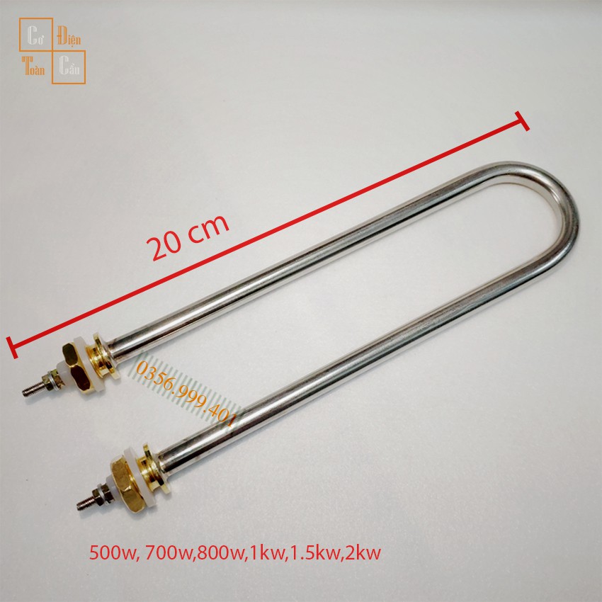 Điện trở đun nước Inox chữ U đơn công suât 500W, 700W, 800W 20cm ( Điện trở nồi phở,nồi hơi, nồi cháo)